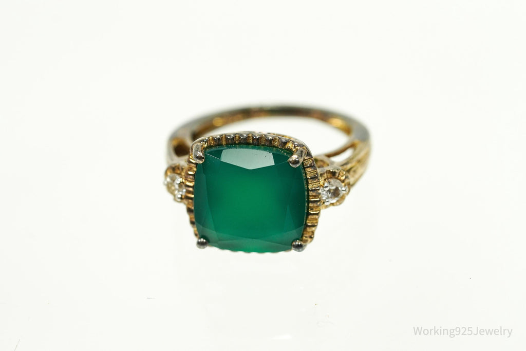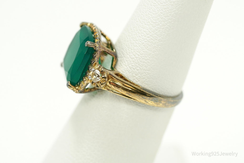 Vintage Green Onyx & Cubic Zirconia Gold Vermeil Sterling Silver Ring - Size 5.25