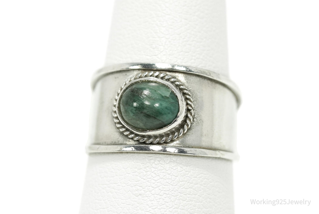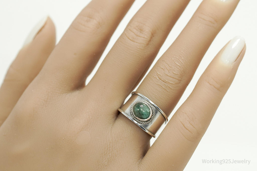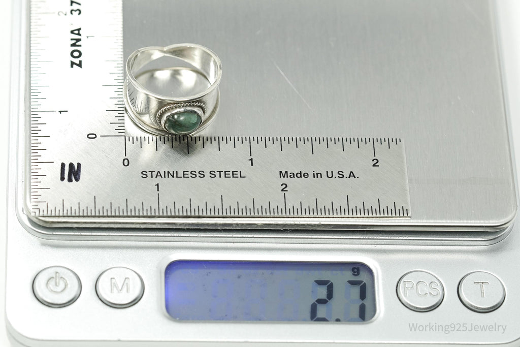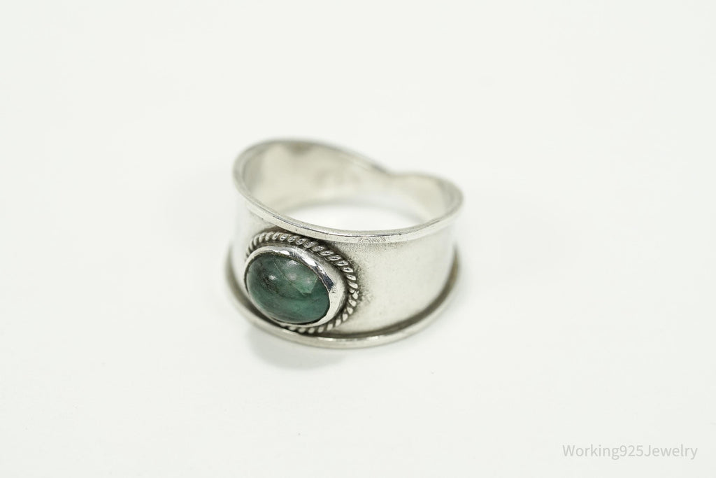 Vintage Green Stone 950 Silver Ring - Size 7.75