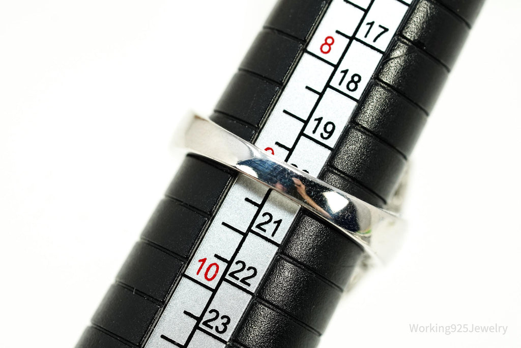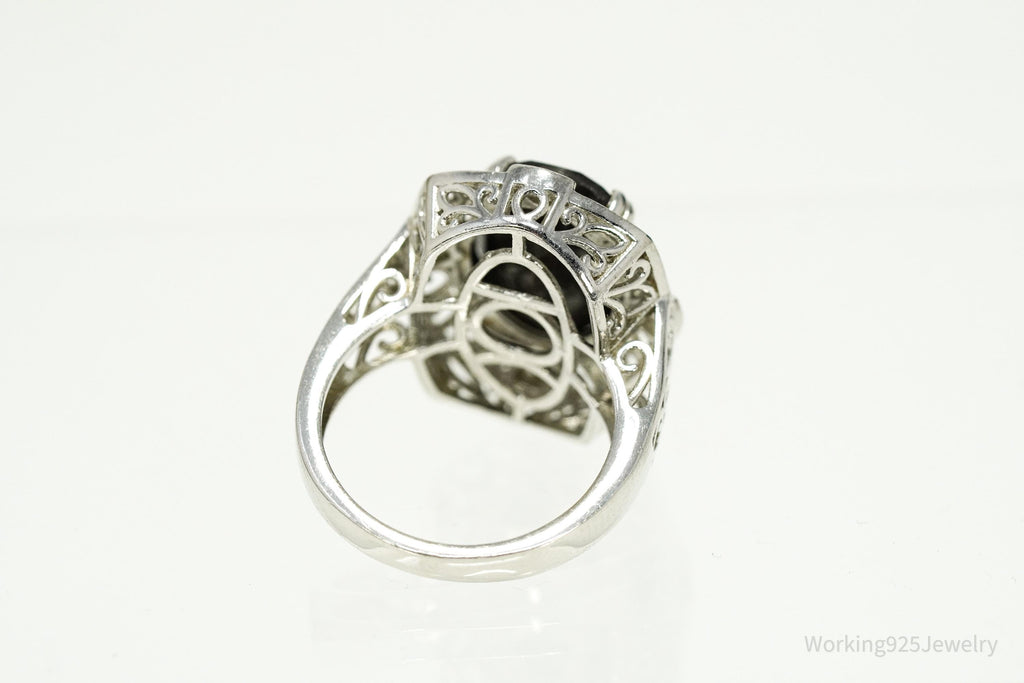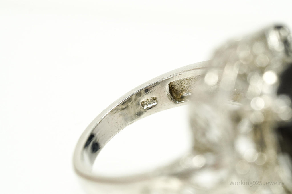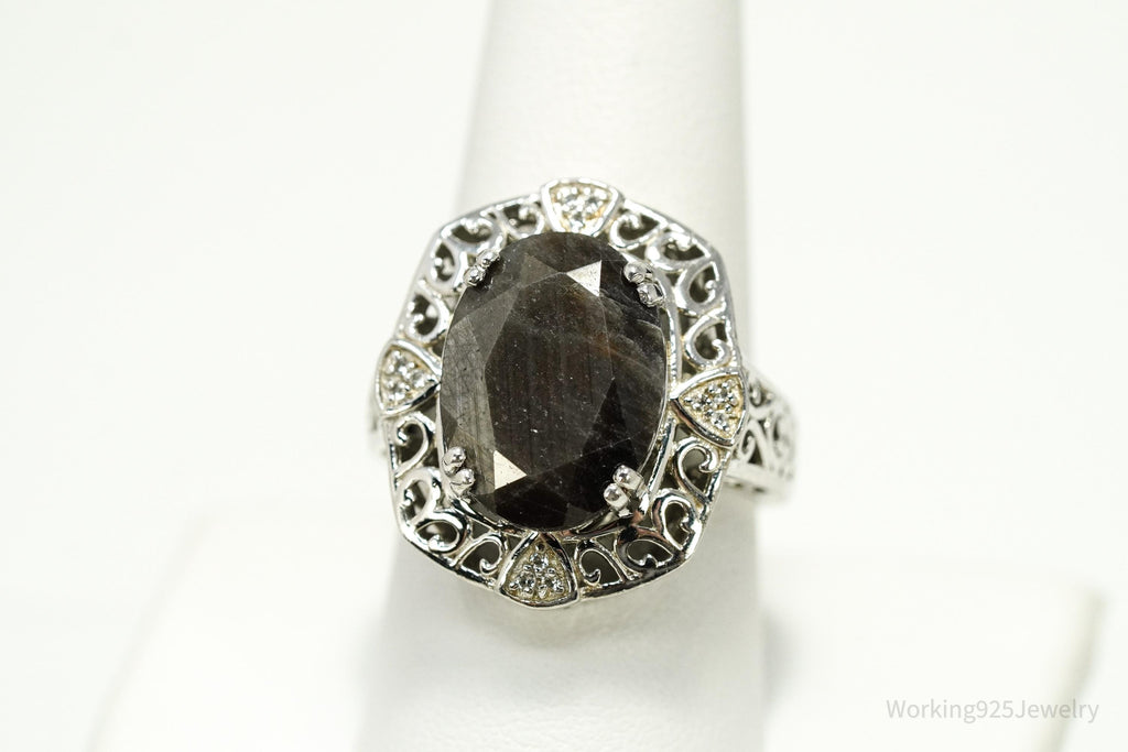 Vintage Grey Brown Stone & White Topaz Sterling Silver Ring - Size 9