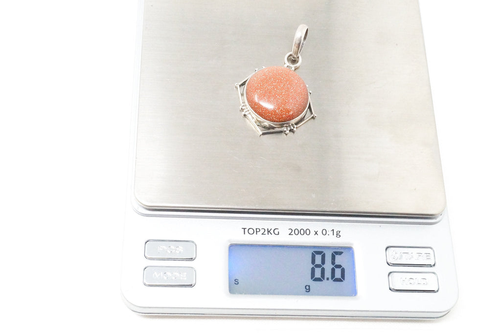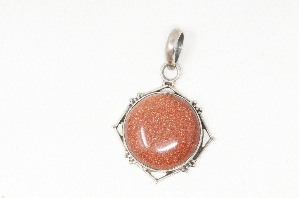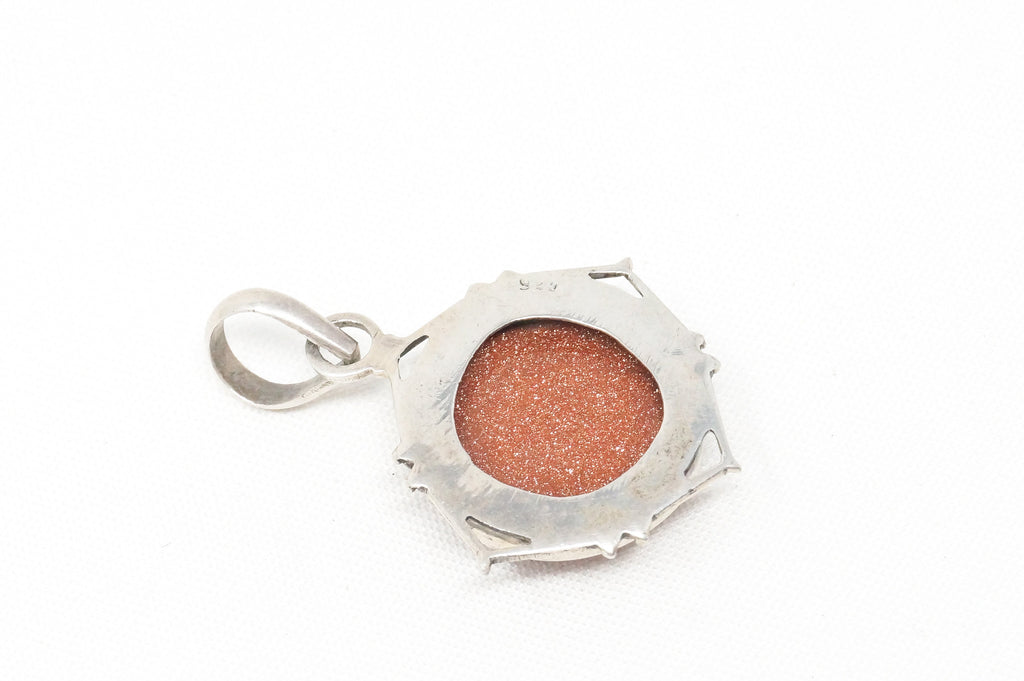 Vintage Handmade Goldstone Sterling Silver Southwestern Necklace Pendant