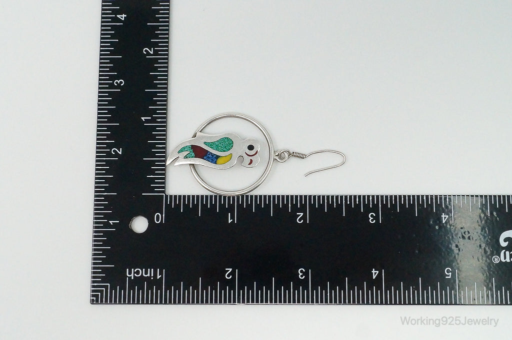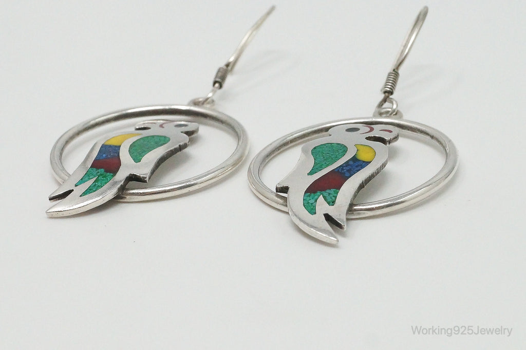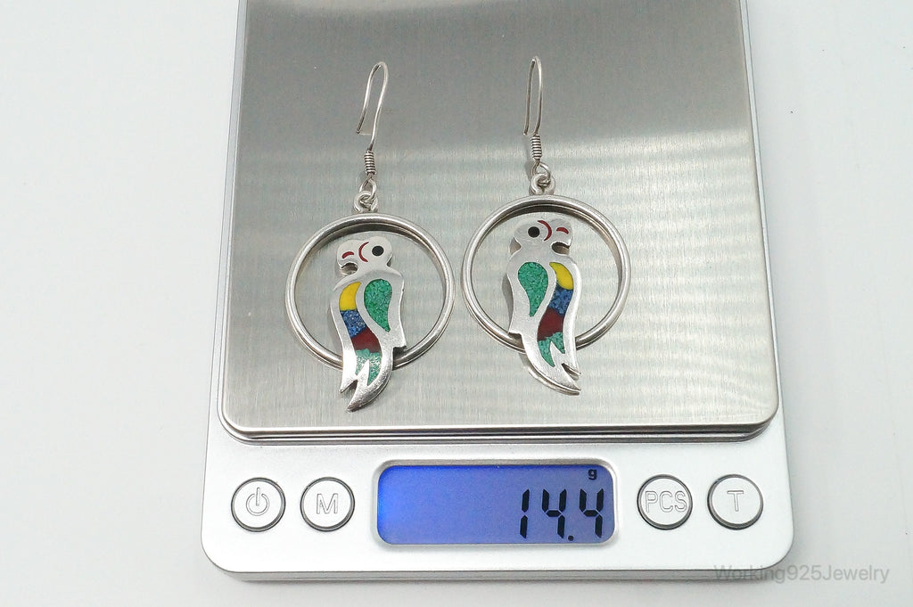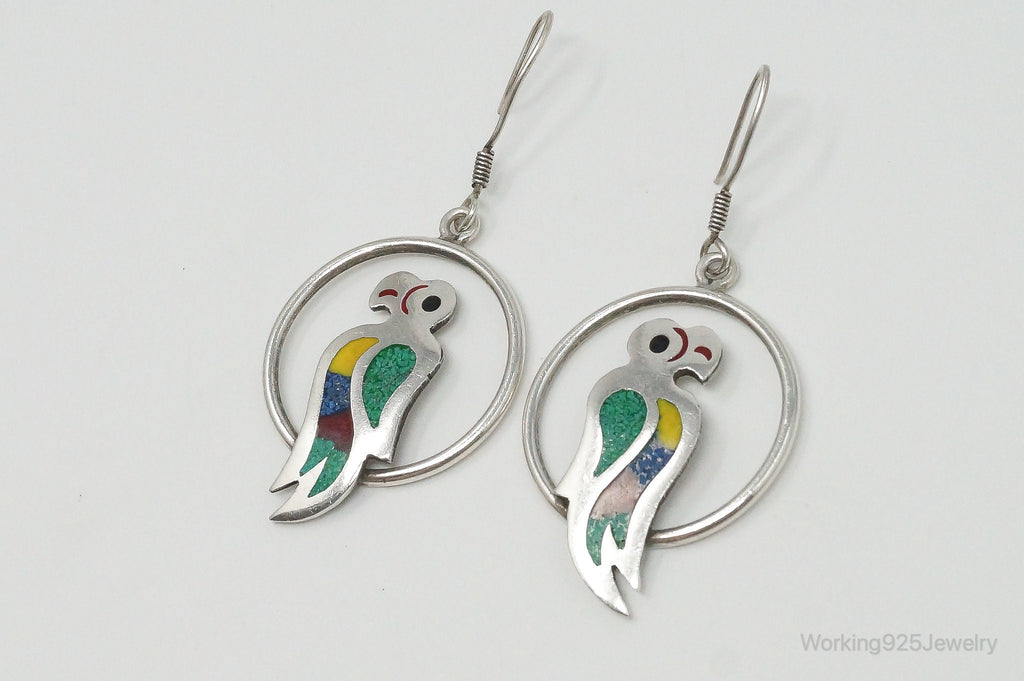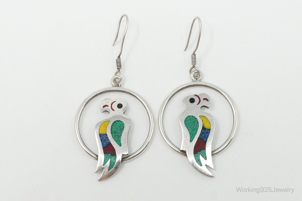 Vintage Handmade Mexico TC-255 Crushed Multi Gem Parot Sterling Silver Earrings