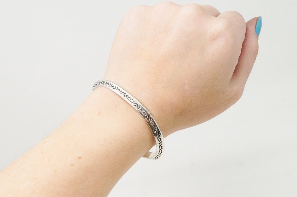 Vintage Handmade Native American A Begay Stamp Sterling Silver Cuff Bracelet