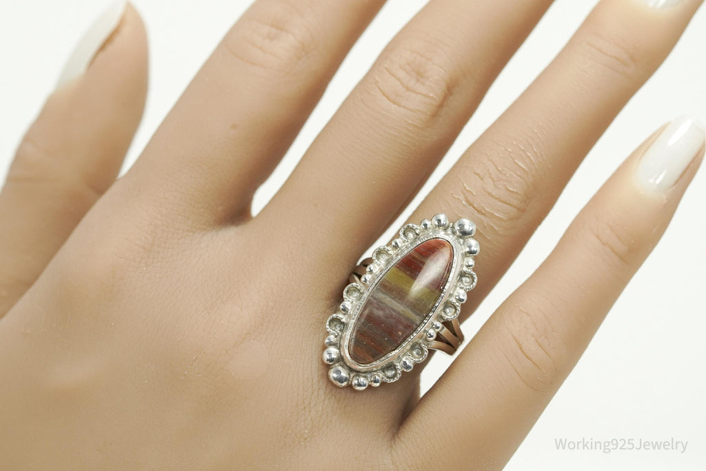 Vintage Handmade Native American Agate Sterling Silver Ring - Size 8