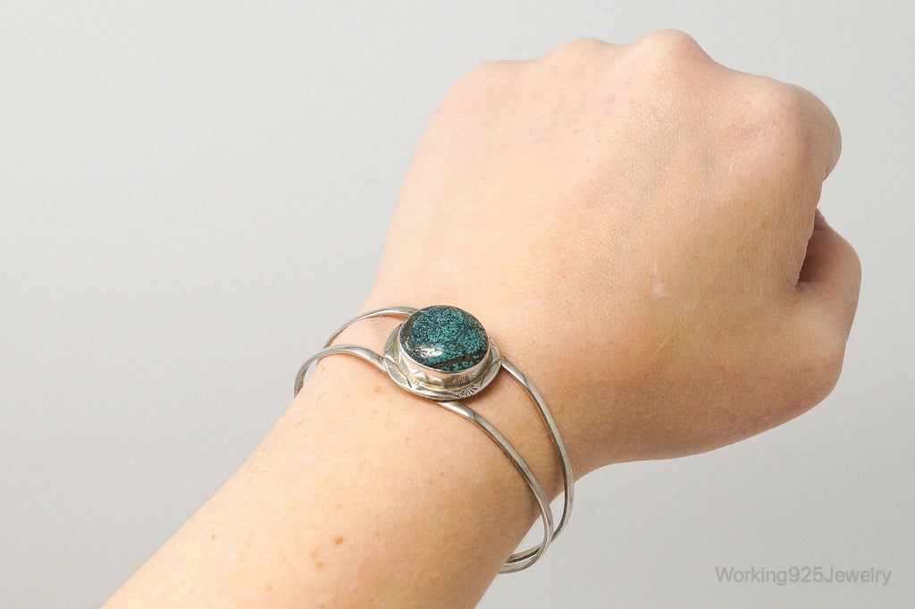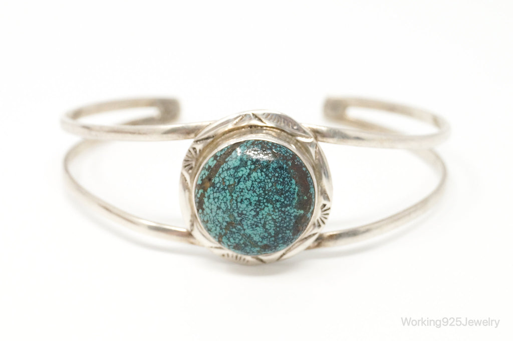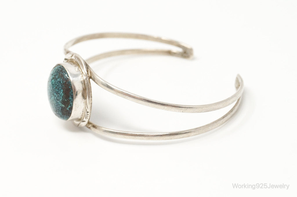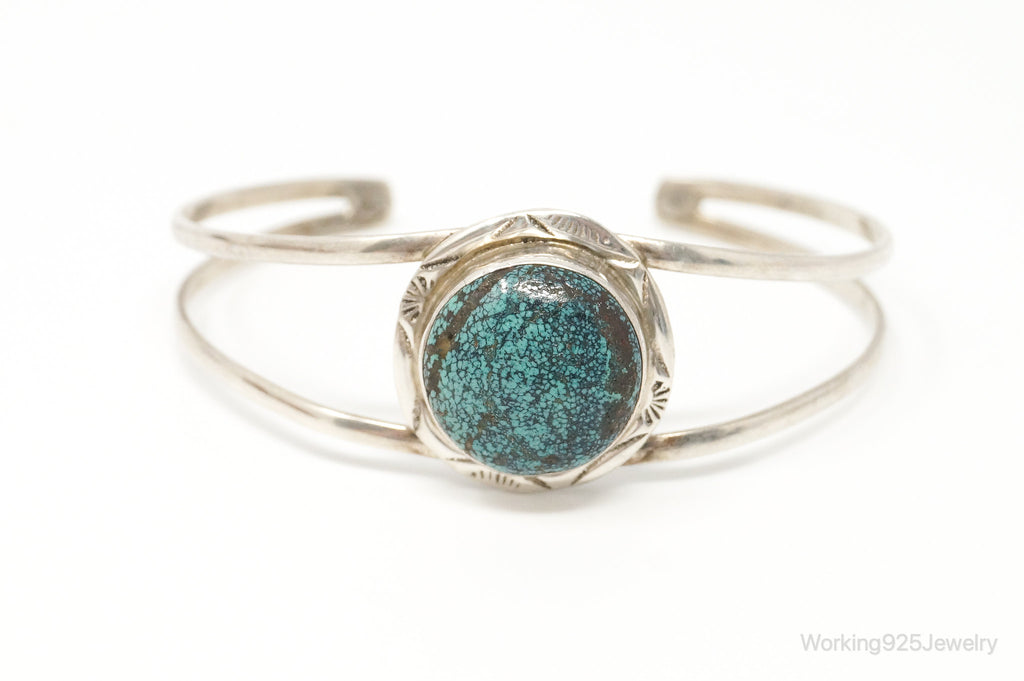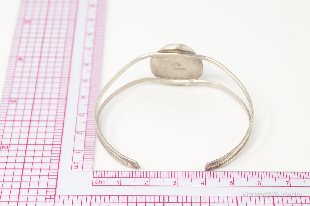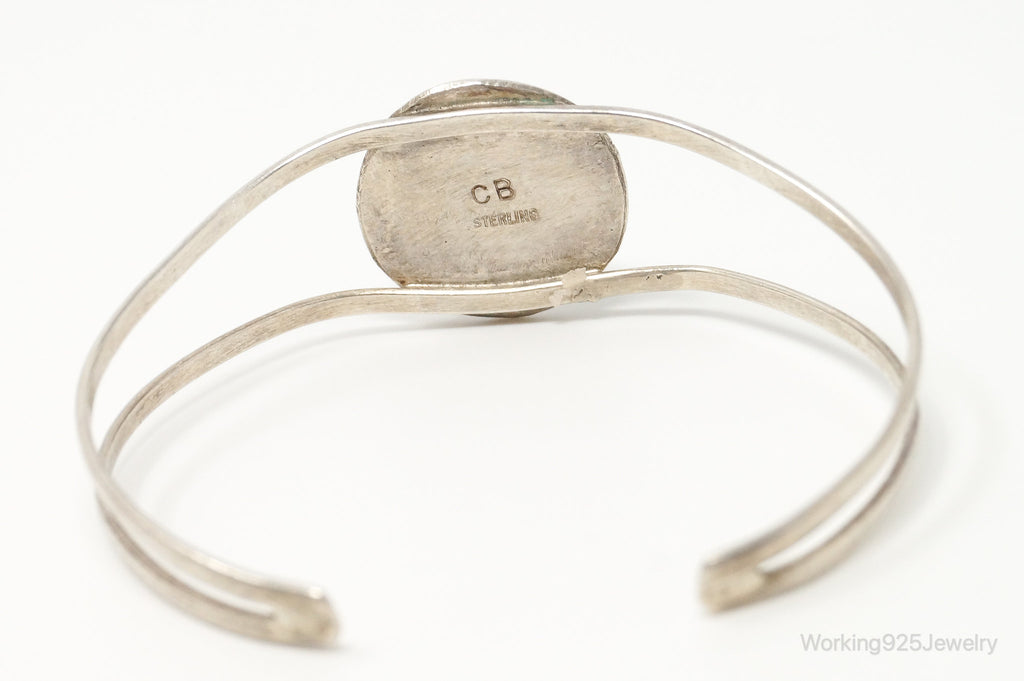 Vintage Handmade Native American CB Turquoise Sterling Silver Cuff Bracelet
