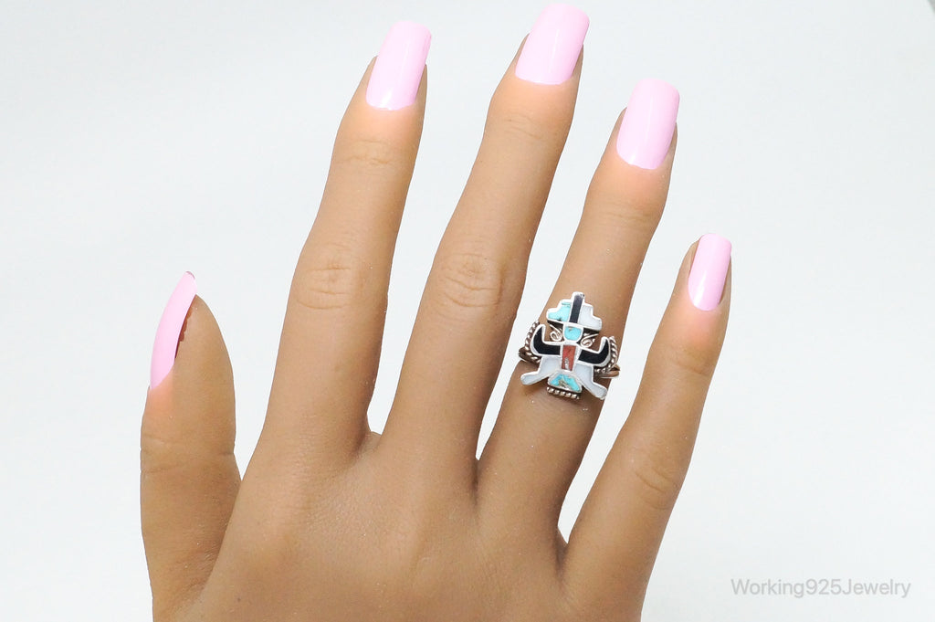 Vintage Handmade Native American Gem Inlay Sterling Silver Ring SZ 6.5