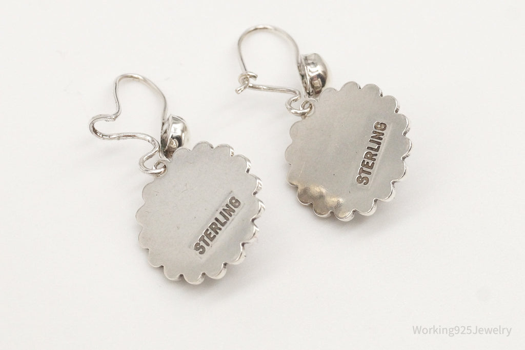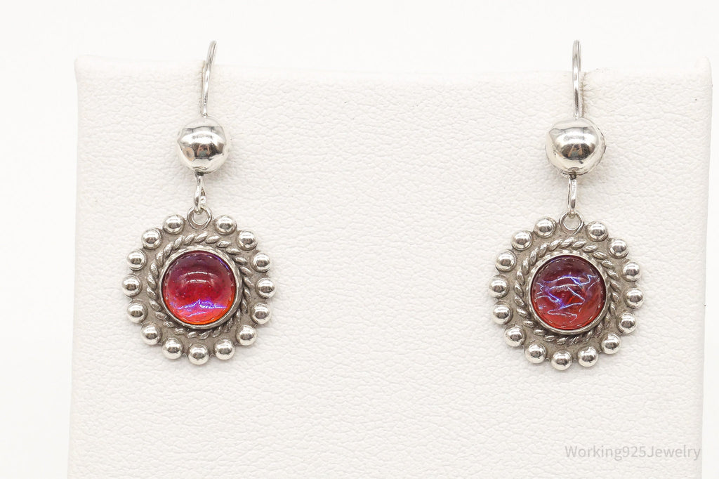 Vintage Handmade Native American Glass Flowers Sterling Silver Earrings