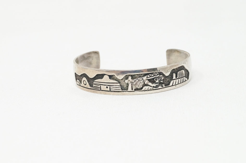Vintage Handmade Native American Tom & Sylvia Kee Stamp Sterling Cuff Bracelet