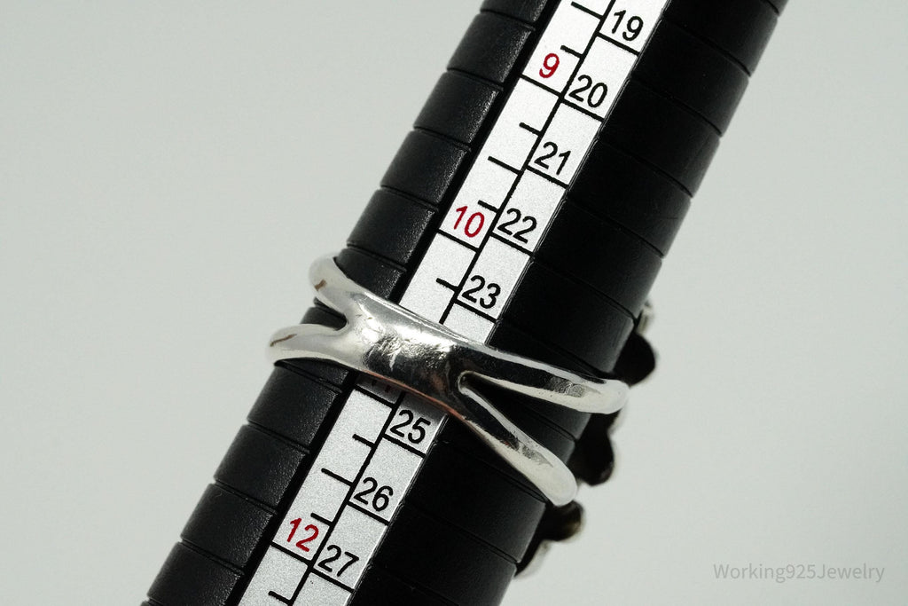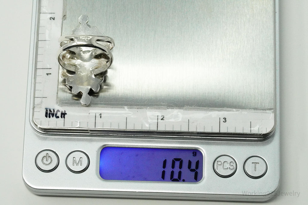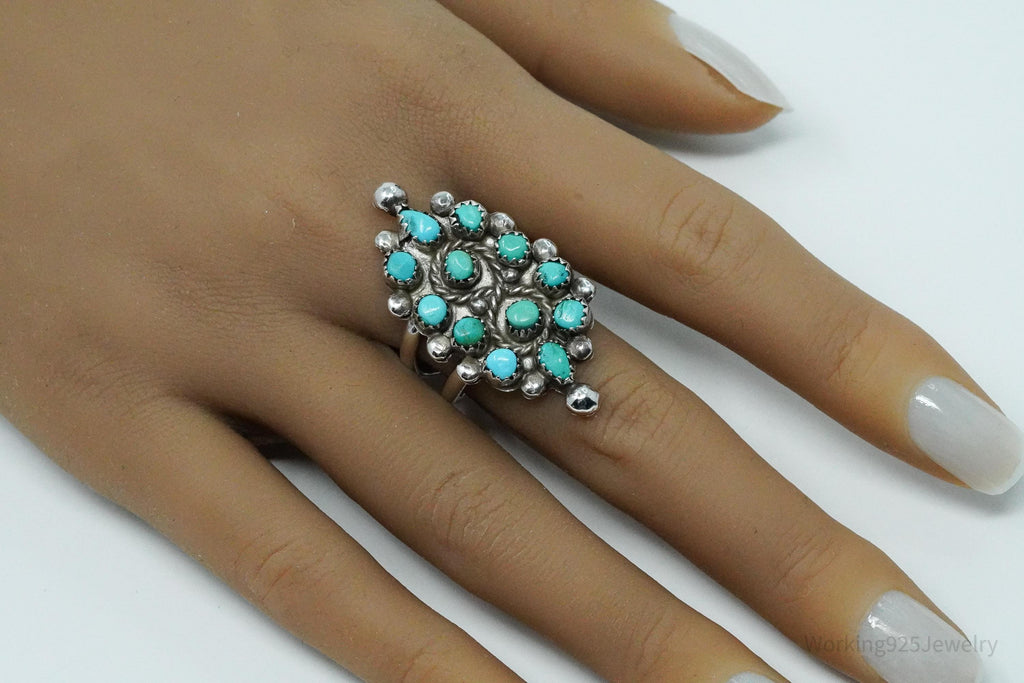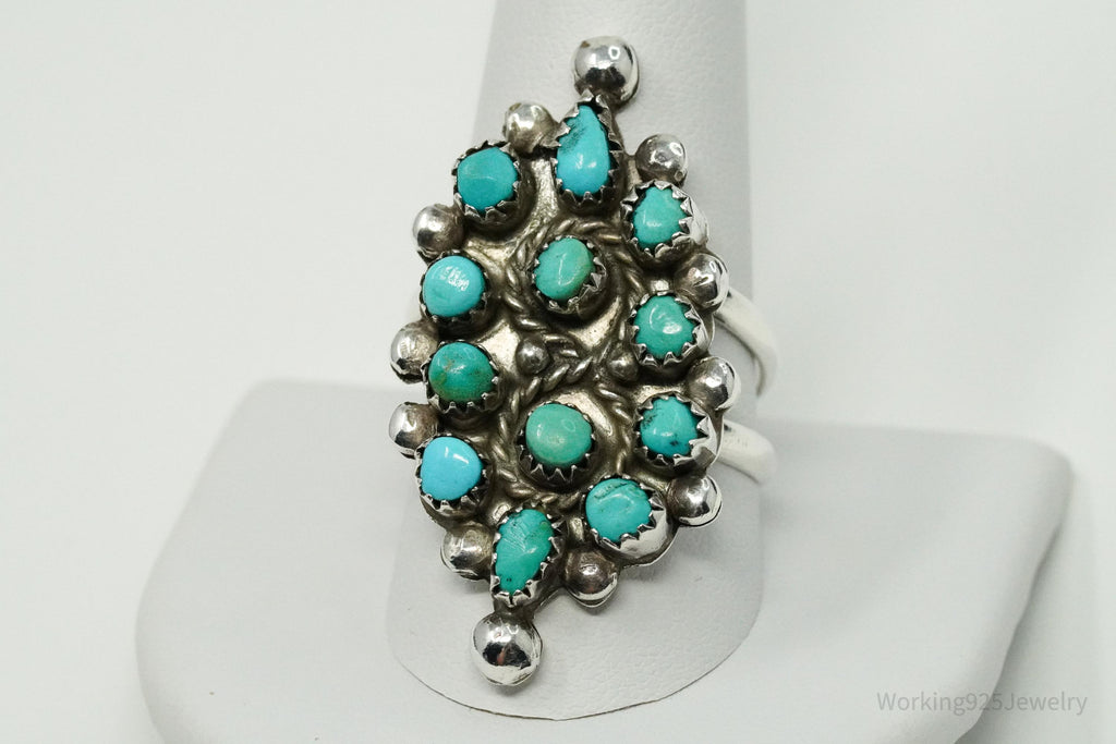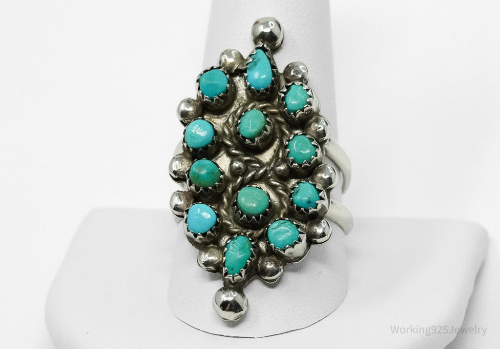 Vintage Handmade Native American Turquoise Inlay Unsigned Silver Ring - Size 10.75