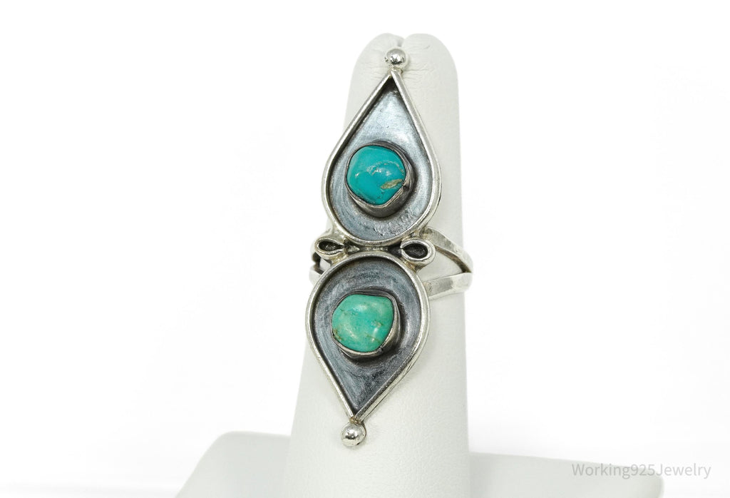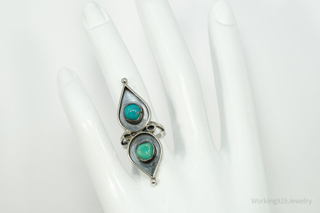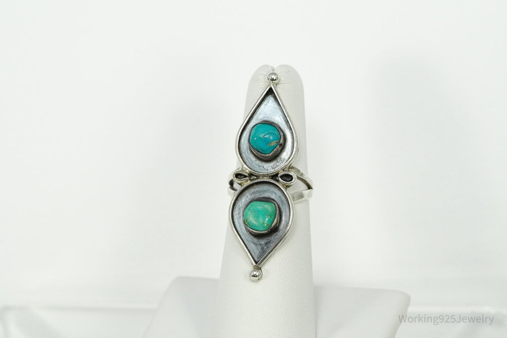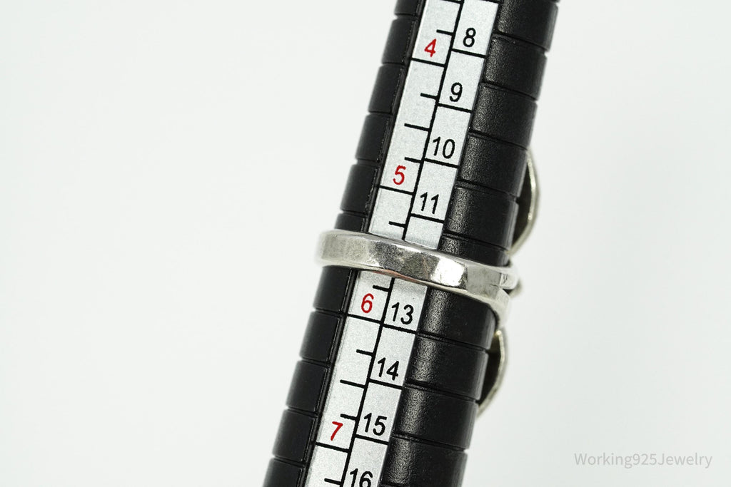 Vintage Handmade Native American Turquoise Inlay Silver Ring - Size 5.5