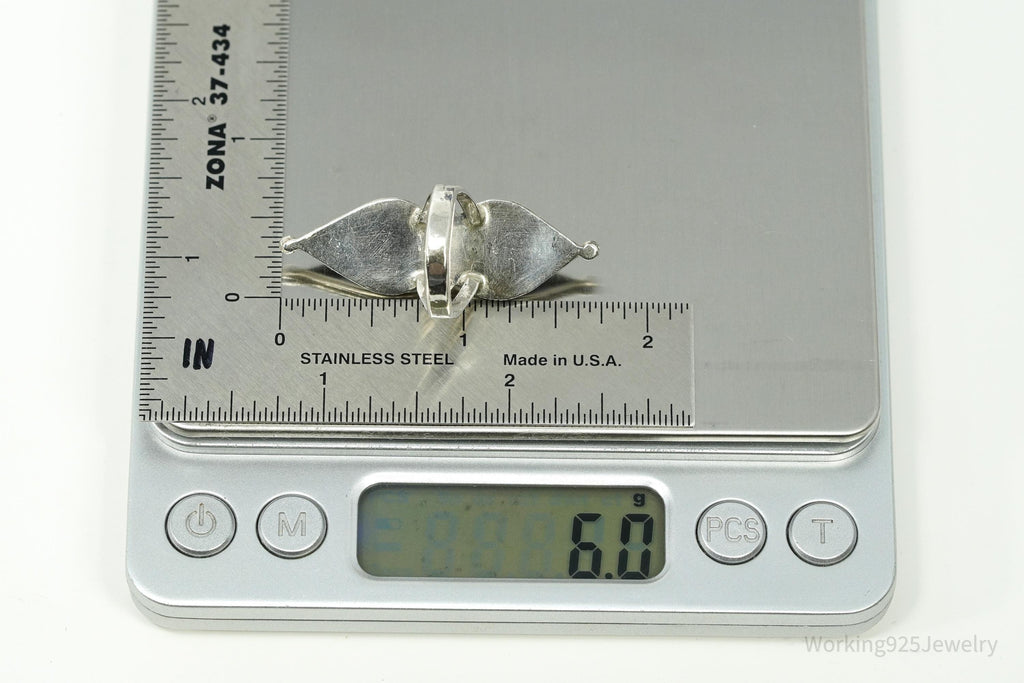 Gemstones: We carefully examine every gemstone under 10× magnification and compare its color and characteristics to what's typical for that stone type. We also use a Presidium gem tester to verify our assessment. While this allows us to confidently identify the type of gemstone, please note that the Presidium tester does not distinguish between earth-mined and lab-grown stones. Because GIA certification is very expensive, it's not something we offer with our sterling silver vintage pieces. We always do our best to accurately identify every stone so you can shop with confidence.
