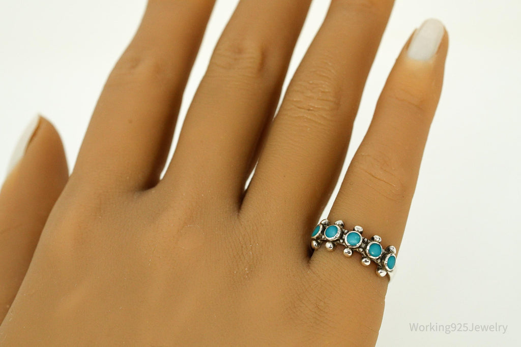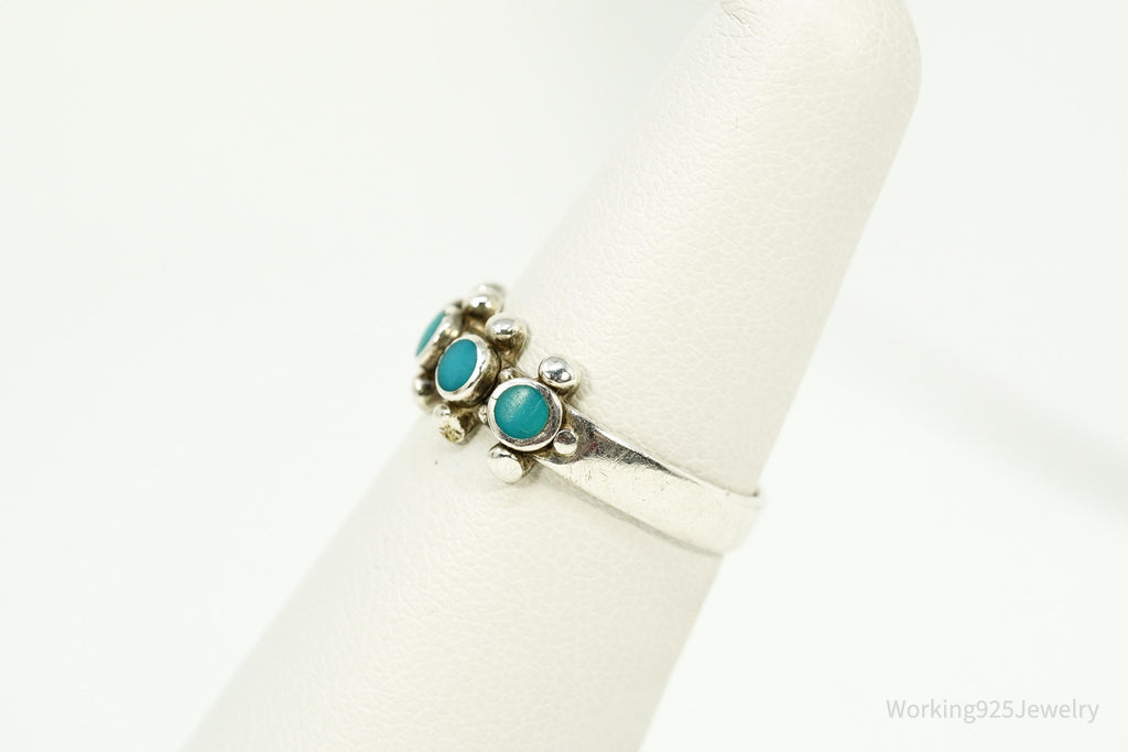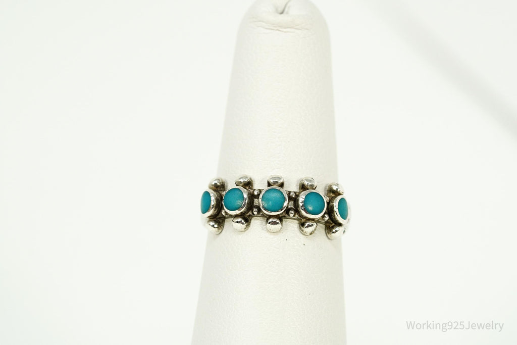 Vintage Handmade Native American Turquoise Sterling Silver Ring - Size 6.5