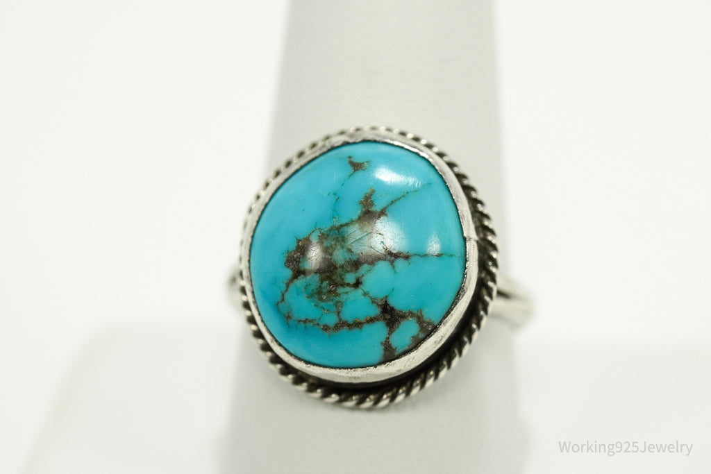 Vintage Handmade Native American Turquoise Unsigned Silver Ring - Size 10.25
