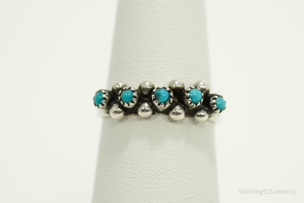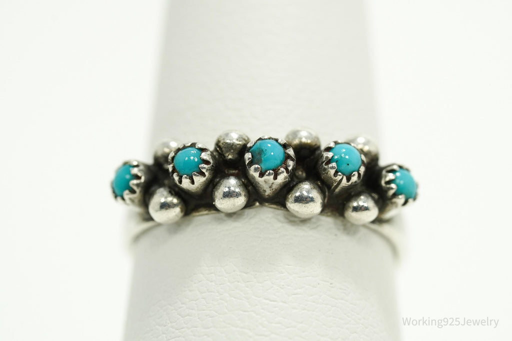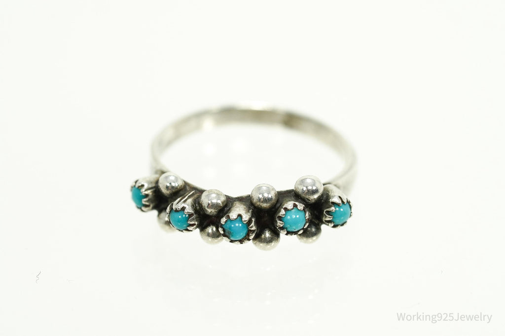 Vintage Handmade Native American Turquoise Unsigned Silver Ring - Size 5.25