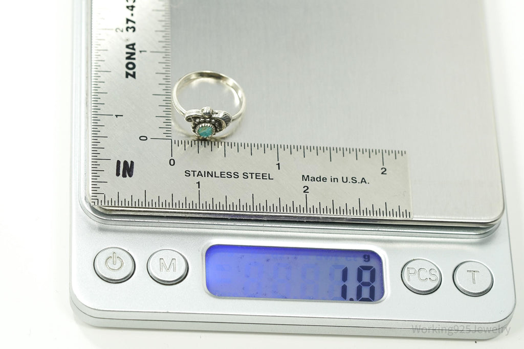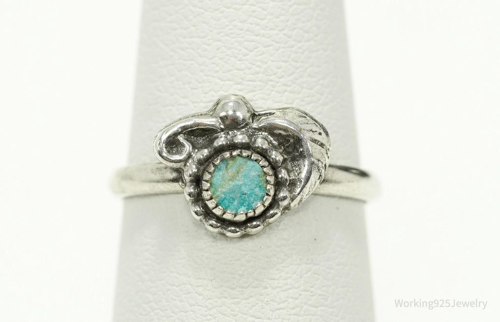 Vintage Handmade Native American Turquoise Unsigned Silver Ring - Size 5.25