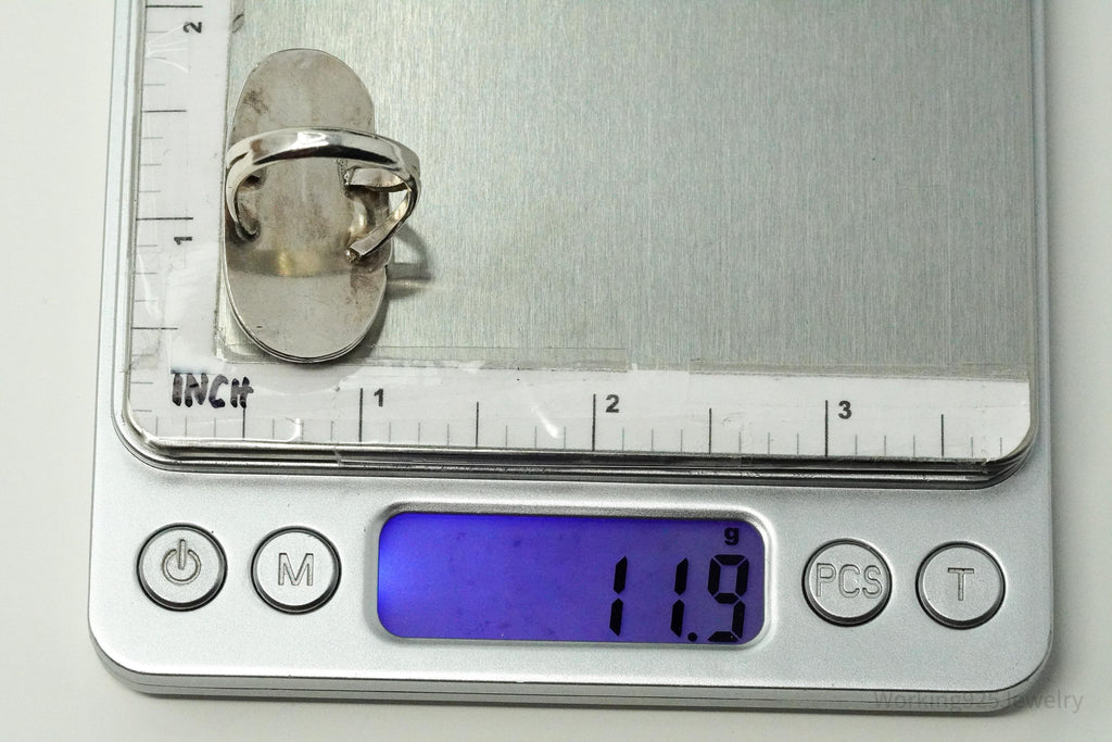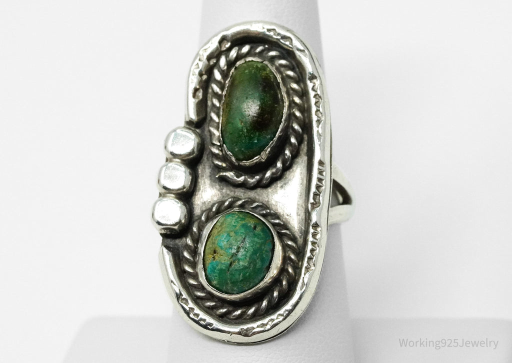 Vintage Handmade Native American Turquoise Unsigned Silver Ring - Size 7.75