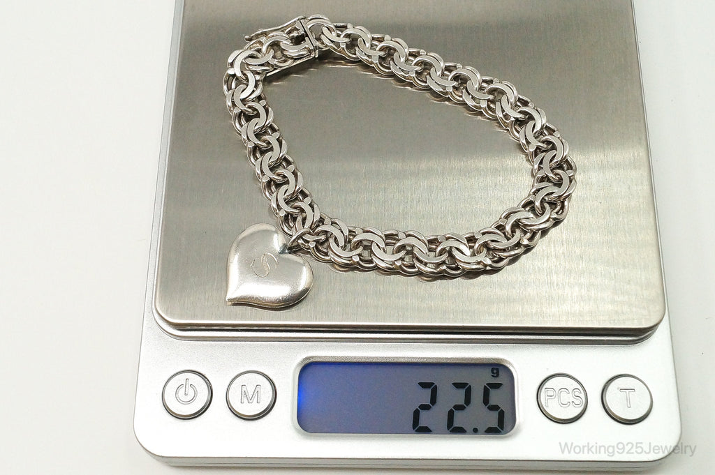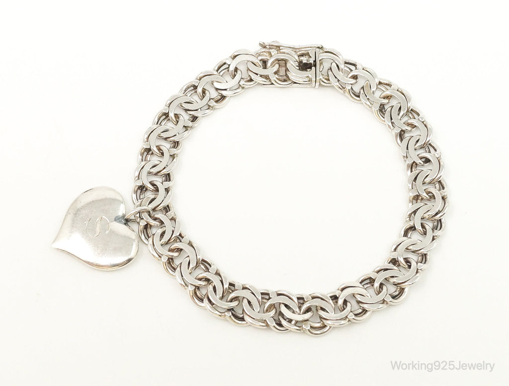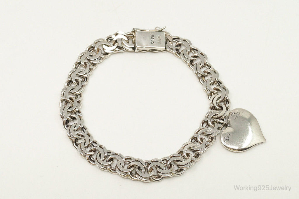 Vintage Hans Hansen Heart Charm On Henning Roland 830S Silver Bracelet