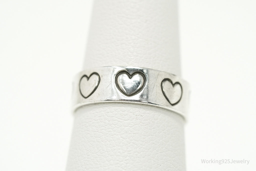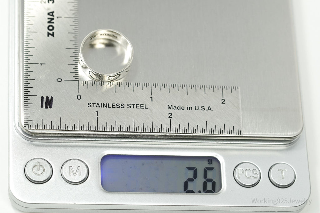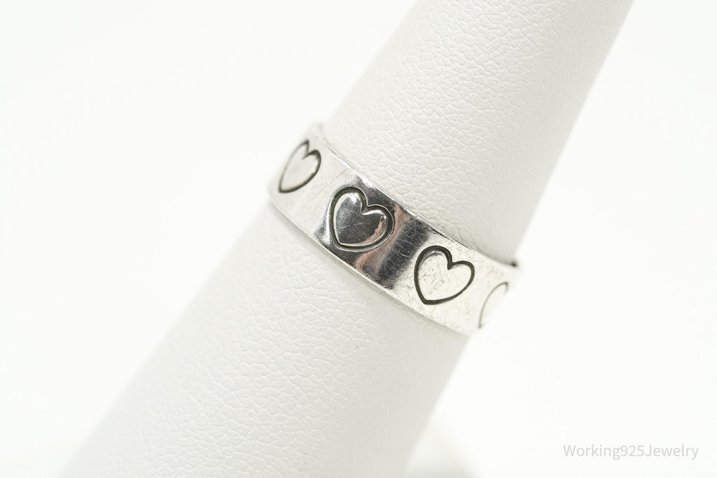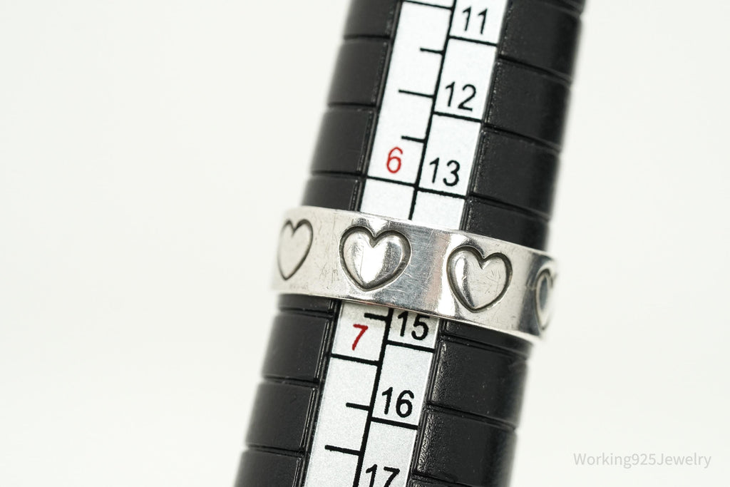 Vintage Heart Pattern Sterling Silver Band Ring - Size 6.75