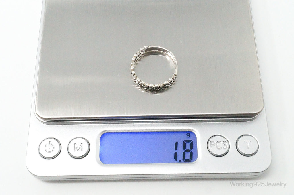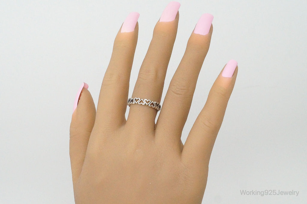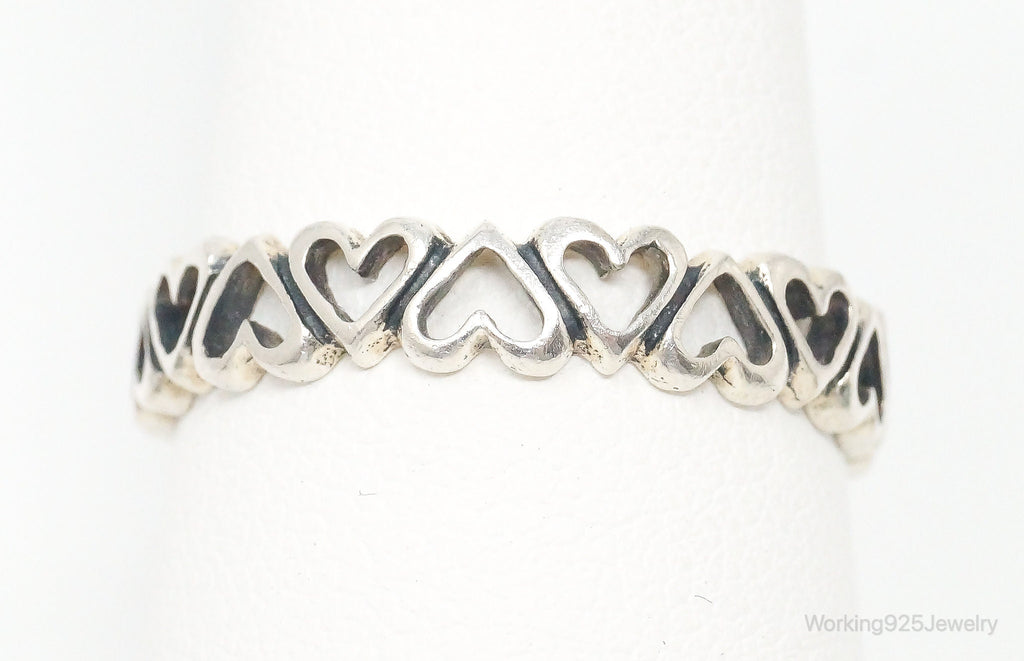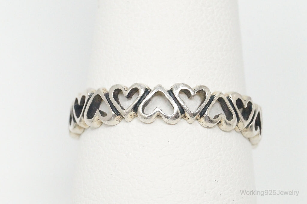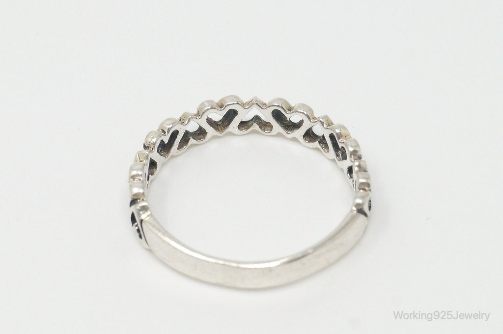 Vintage Heart Pattern Sterling Silver Band Ring - Size 8.5