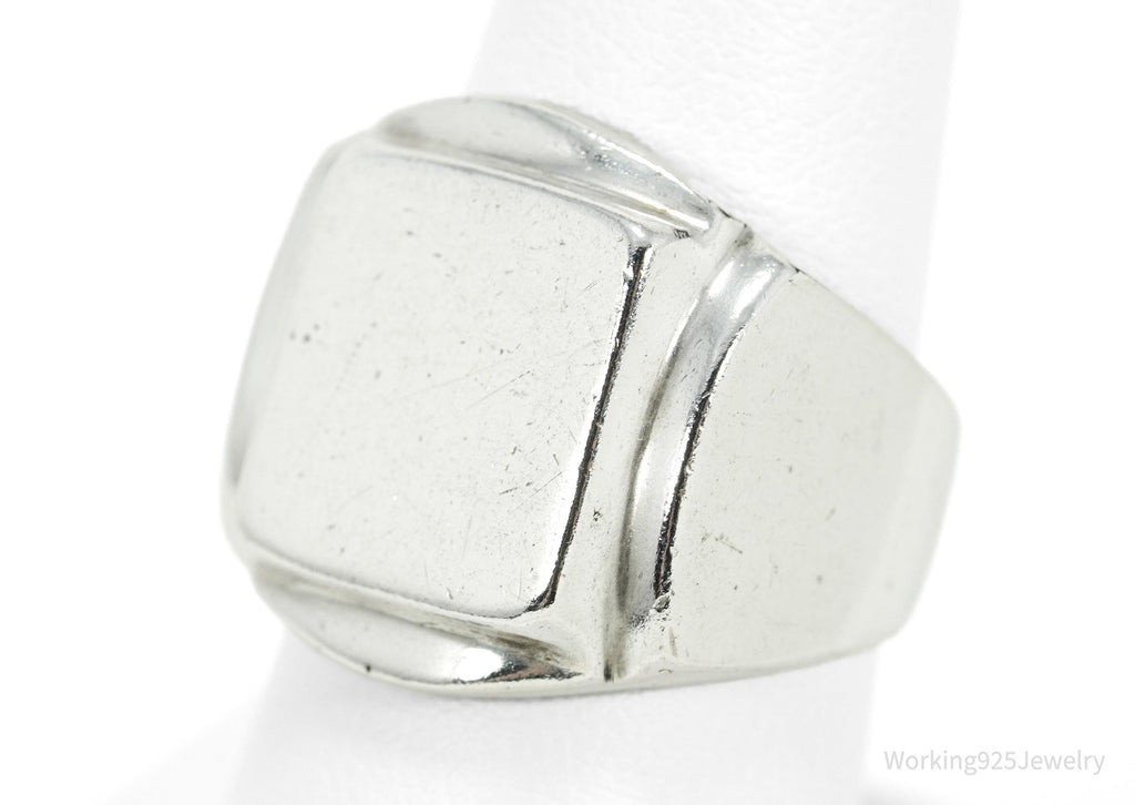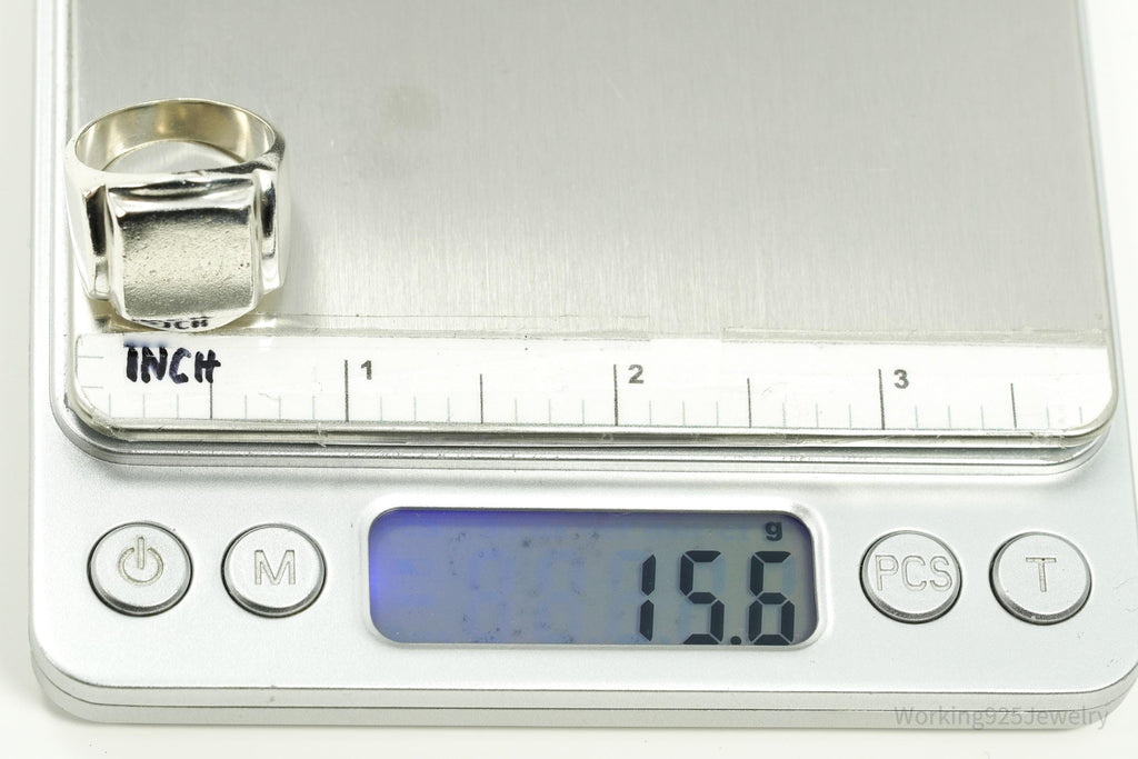 Vintage Heavy Mexico Modernist Style Sterling Silver Ring Size 8