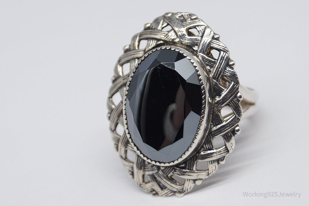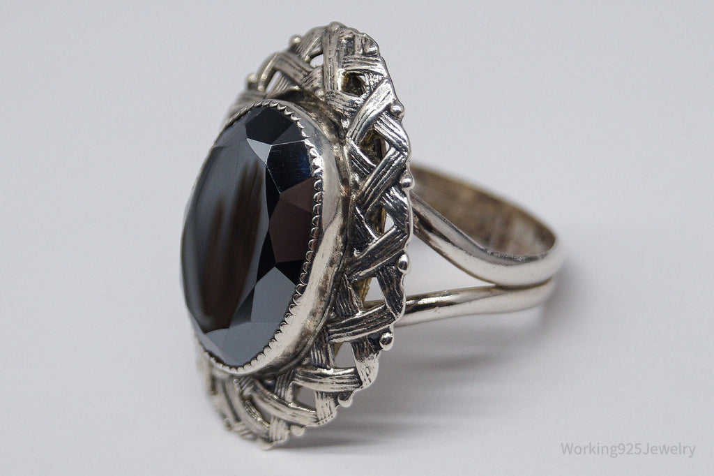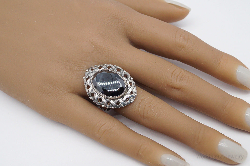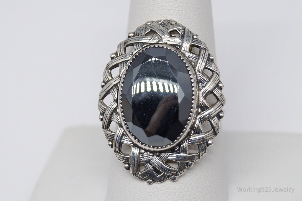 Vintage Hematite Silver Ring - Size 8.75