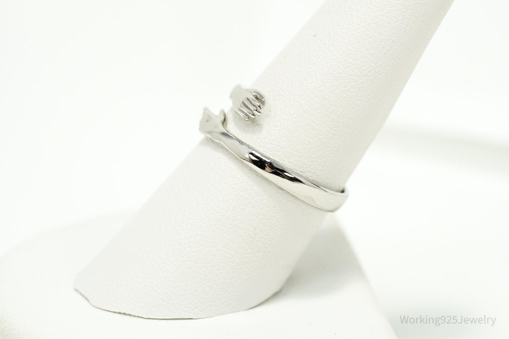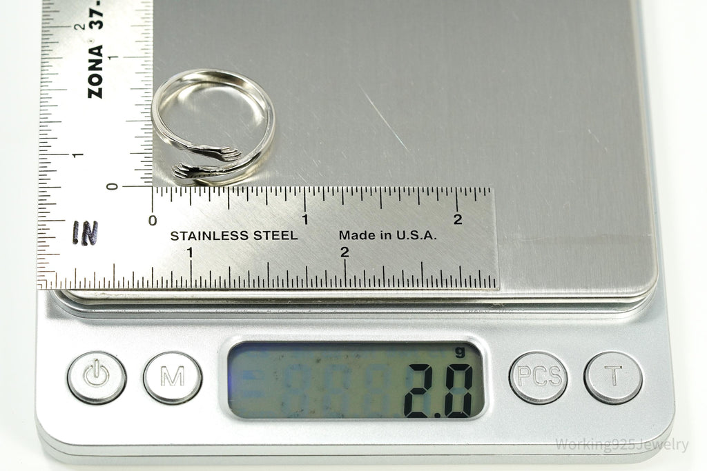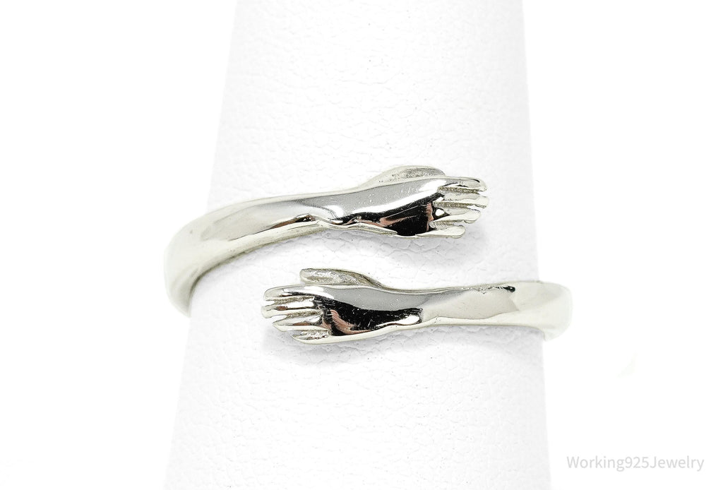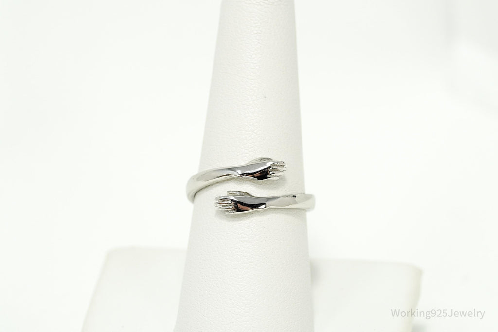Vintage Hugging Hands Sterling Silver Wrap Ring - Size 8 Adjustable