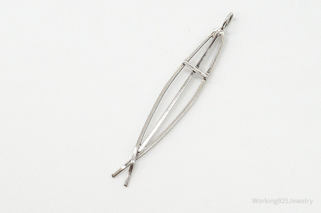 Vintage Ichthus Cross Fish Modernist Sterling Silver Necklace Pendant