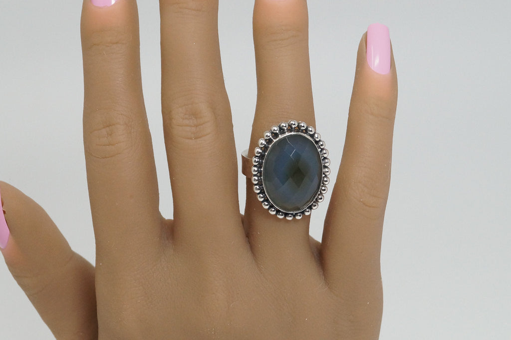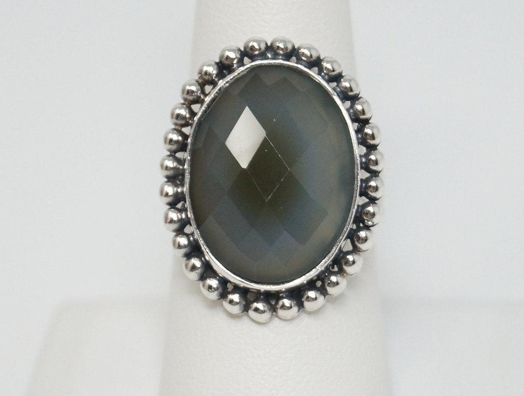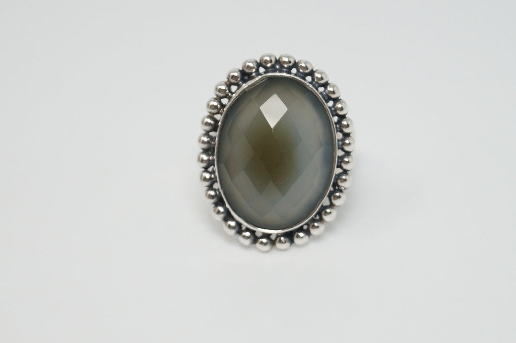 Vintage India Chalcedony Sterling Silver Ring - Sz 7.75