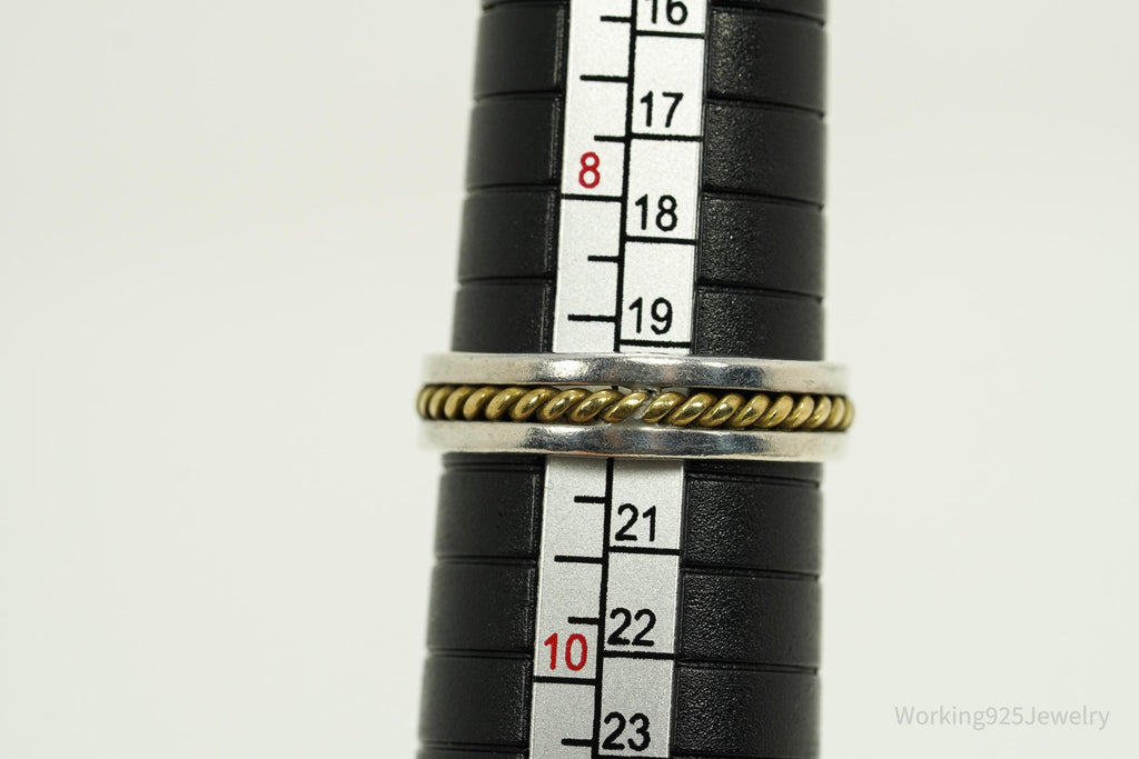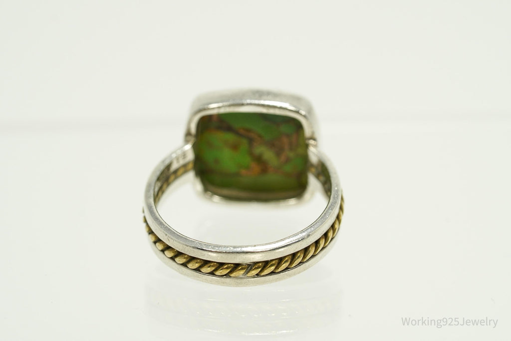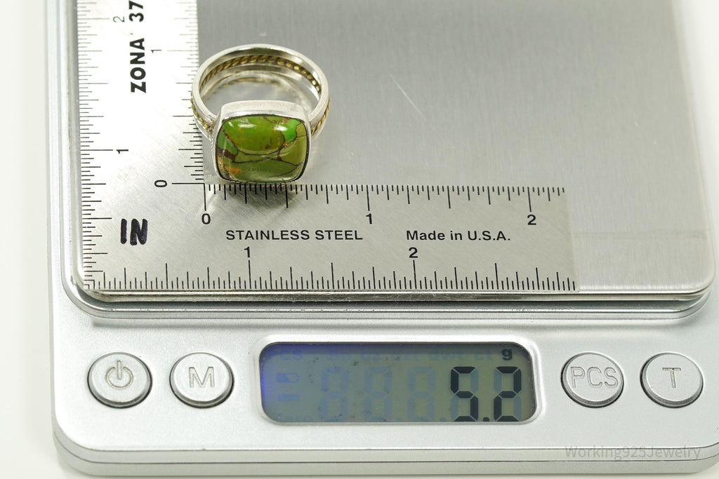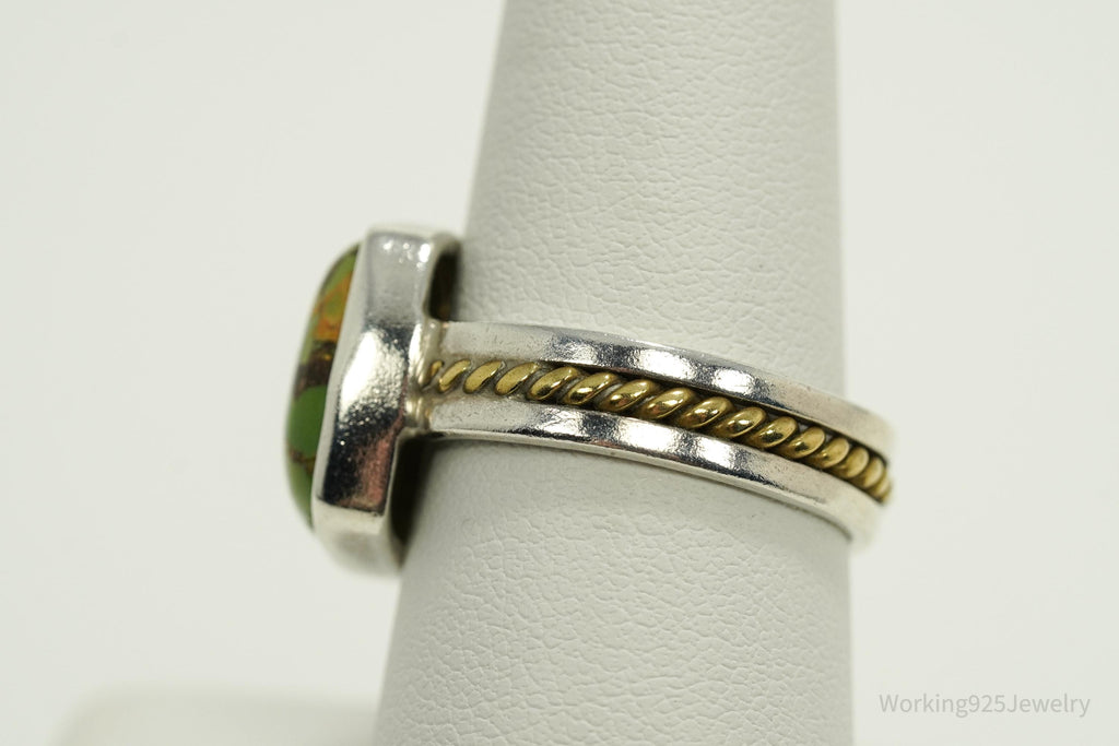 Vintage India Designer YS Green Copper Turquoise Two Tone Sterling Silver Ring - Size 9
