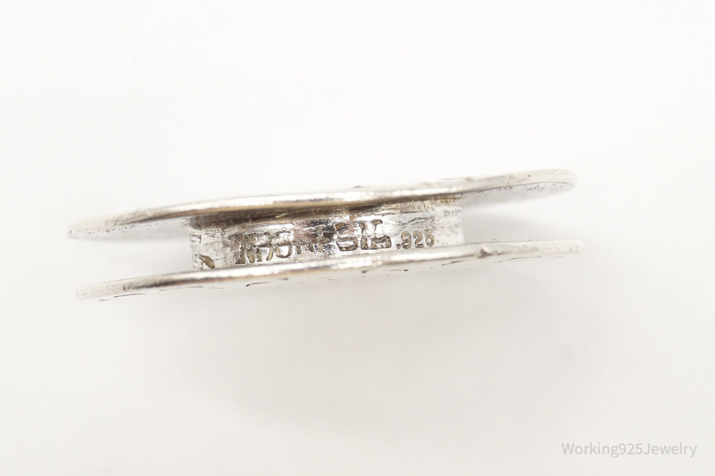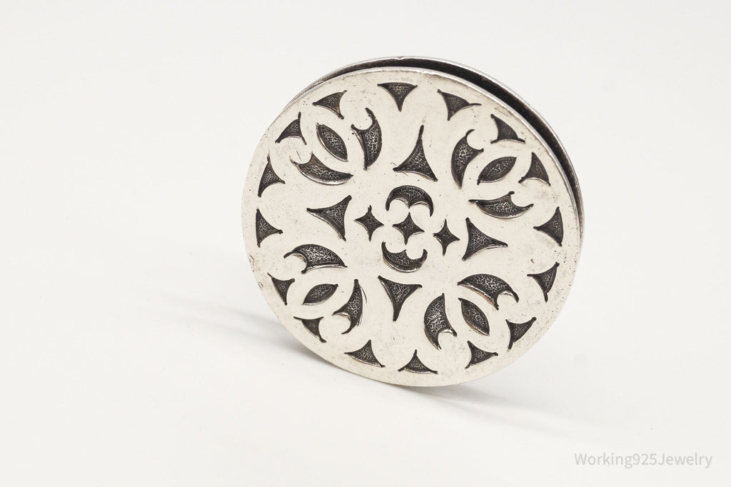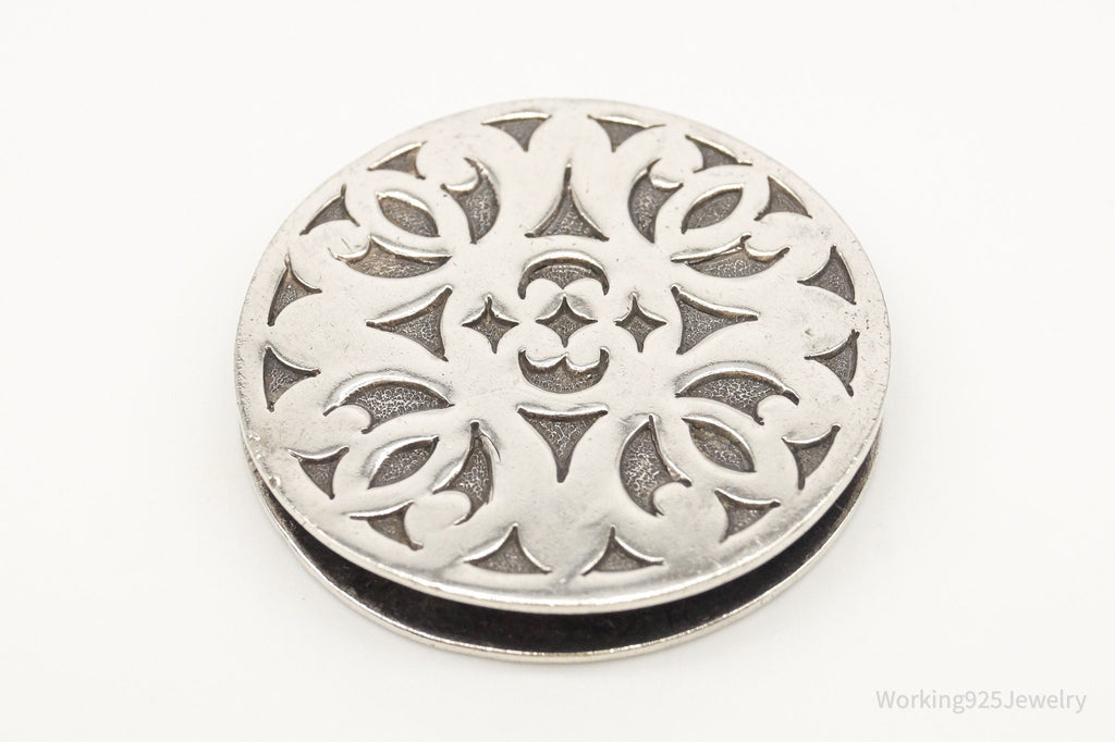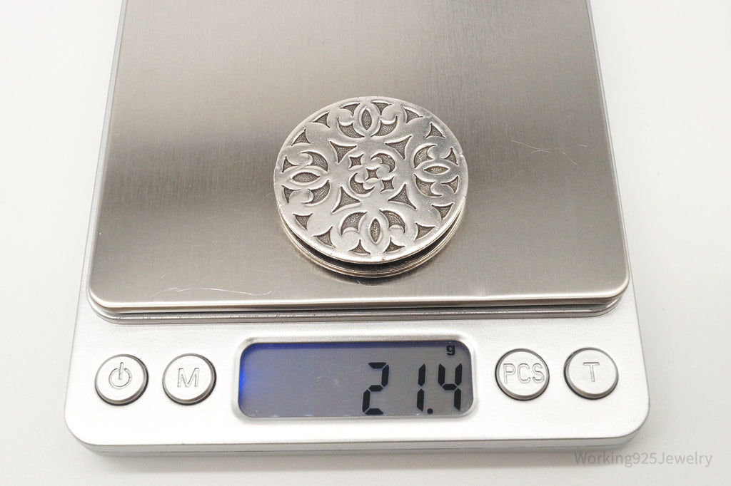 Vintage Indonesia Bali Sterling Silver Disk Rope Necklace Pendant
