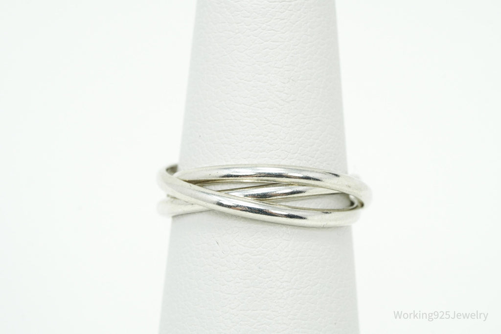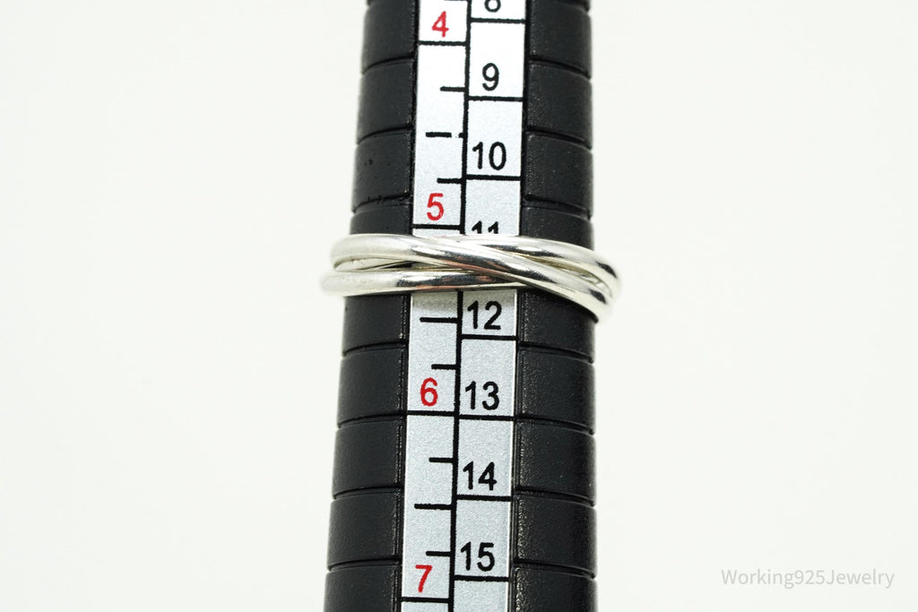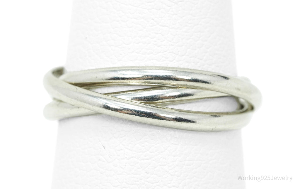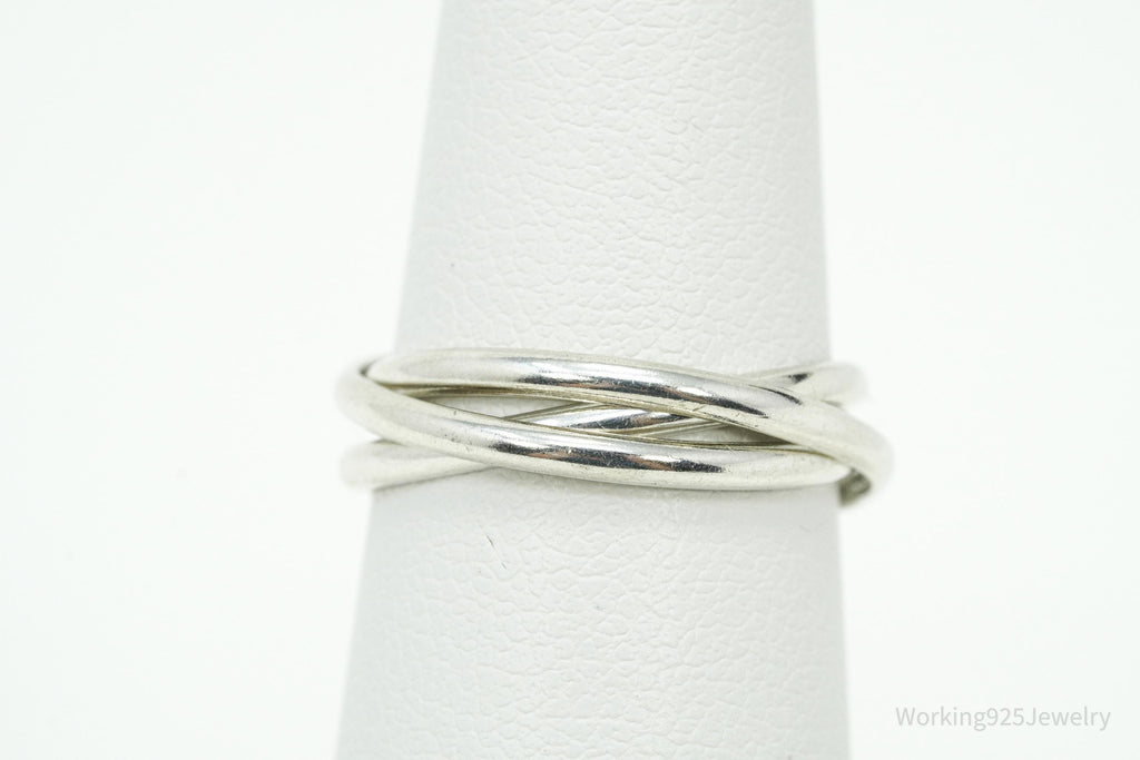Vintage Intertwined Rings Sleek Modern Sterling Silver Ring - Size 5.25