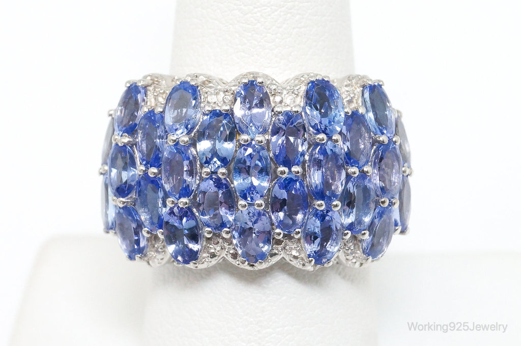 Vintage Iolite 2 Diamond Sterling Silver Ring SZ 8