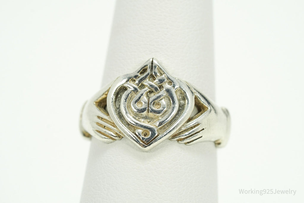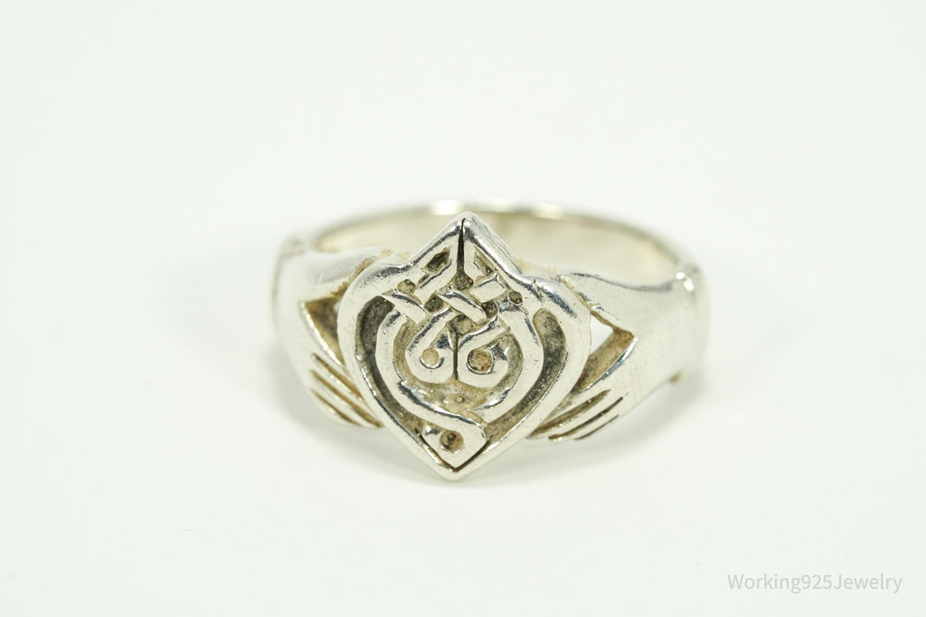 Vintage Irish Claddagh Sterling Silver Ring - Size 7.25