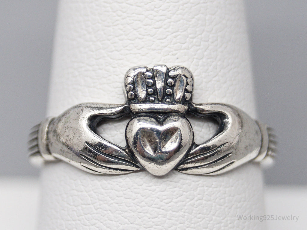 Vintage Irish Heart Claddagh Sterling Silver Ring - Size 8.75