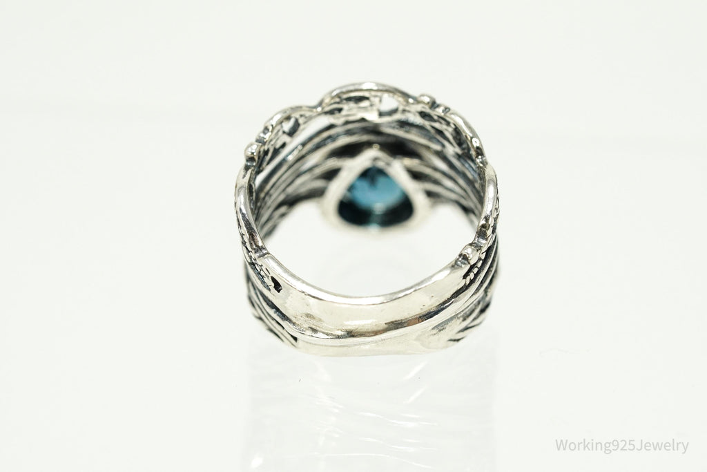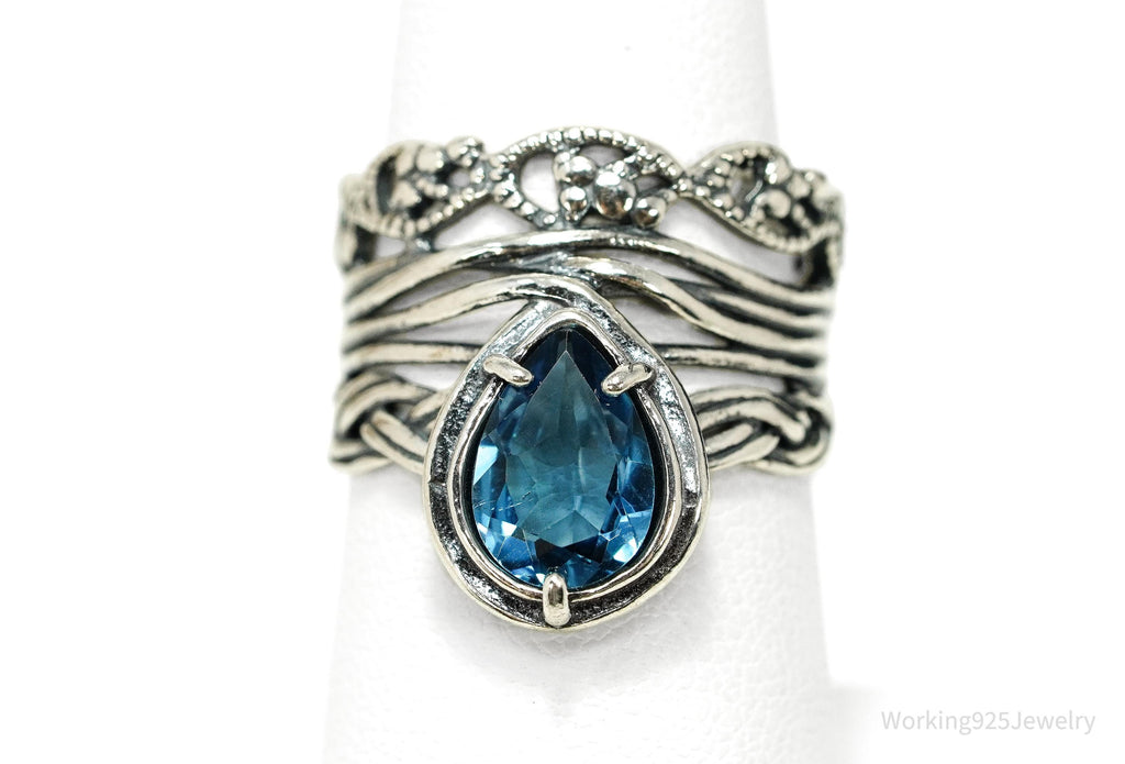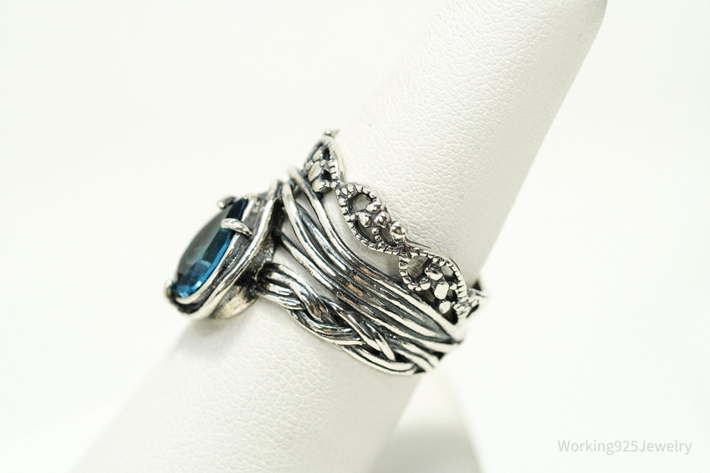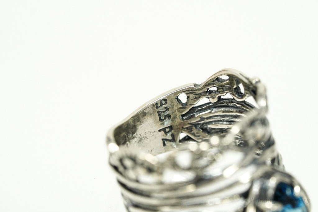 Vintage Israel Designer Paz PZ Blue Topaz Sterling Silver Ring - Size 7.5