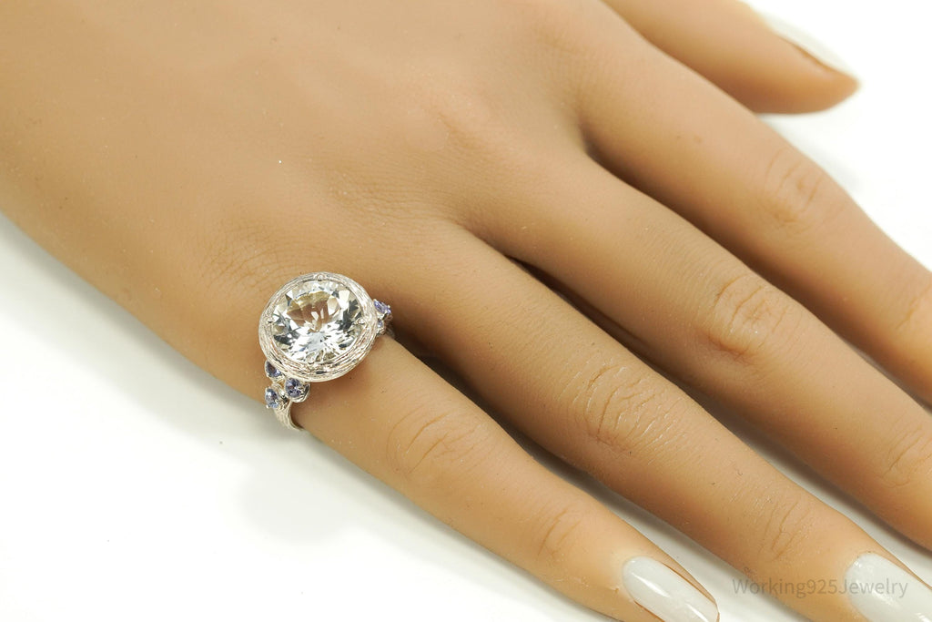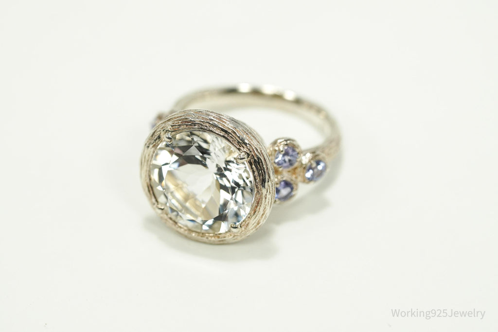 Vintage Israel Designer Paz PZ Clear Quartz & Tanzanite Sterling Silver Ring - Size 6.25