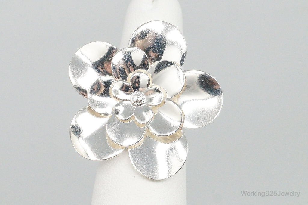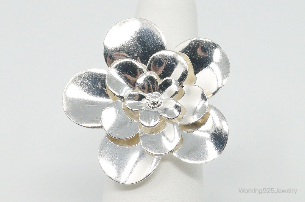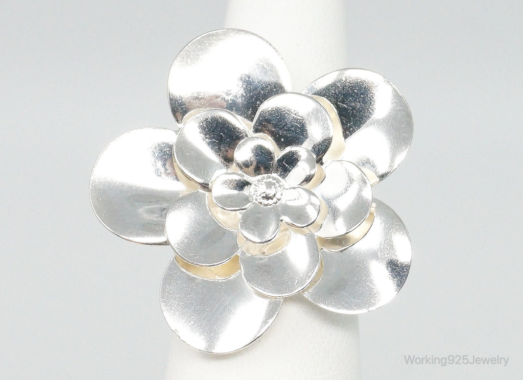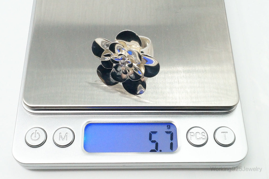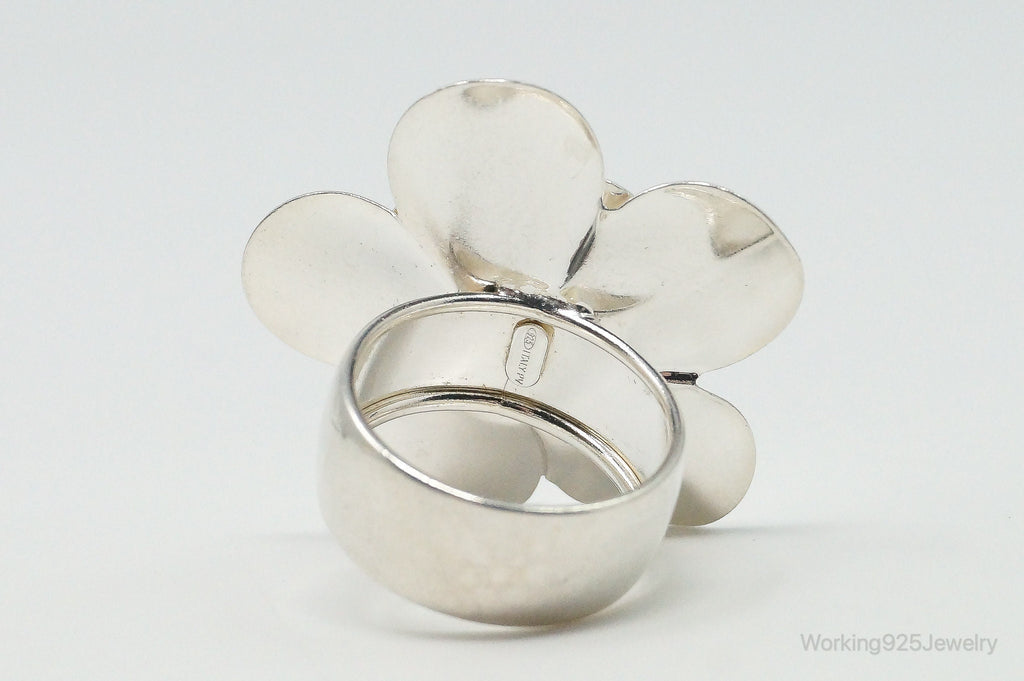 Vintage Italian Designer Paola Valentini Flower Sterling Silver Ring - Size 6