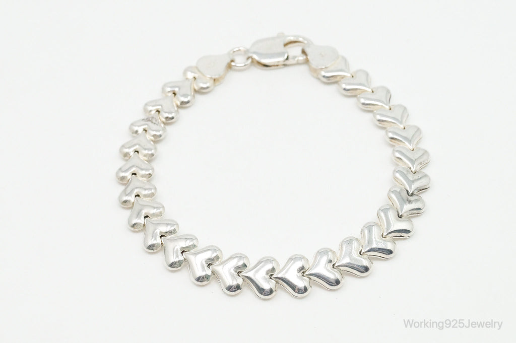 Vintage Italian Heart Sterling Silver Link Bracelet