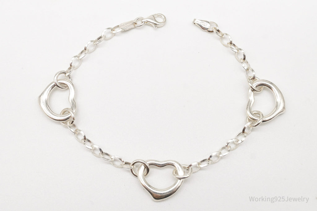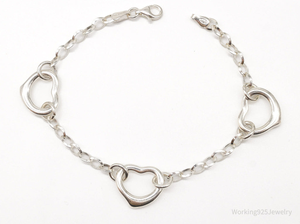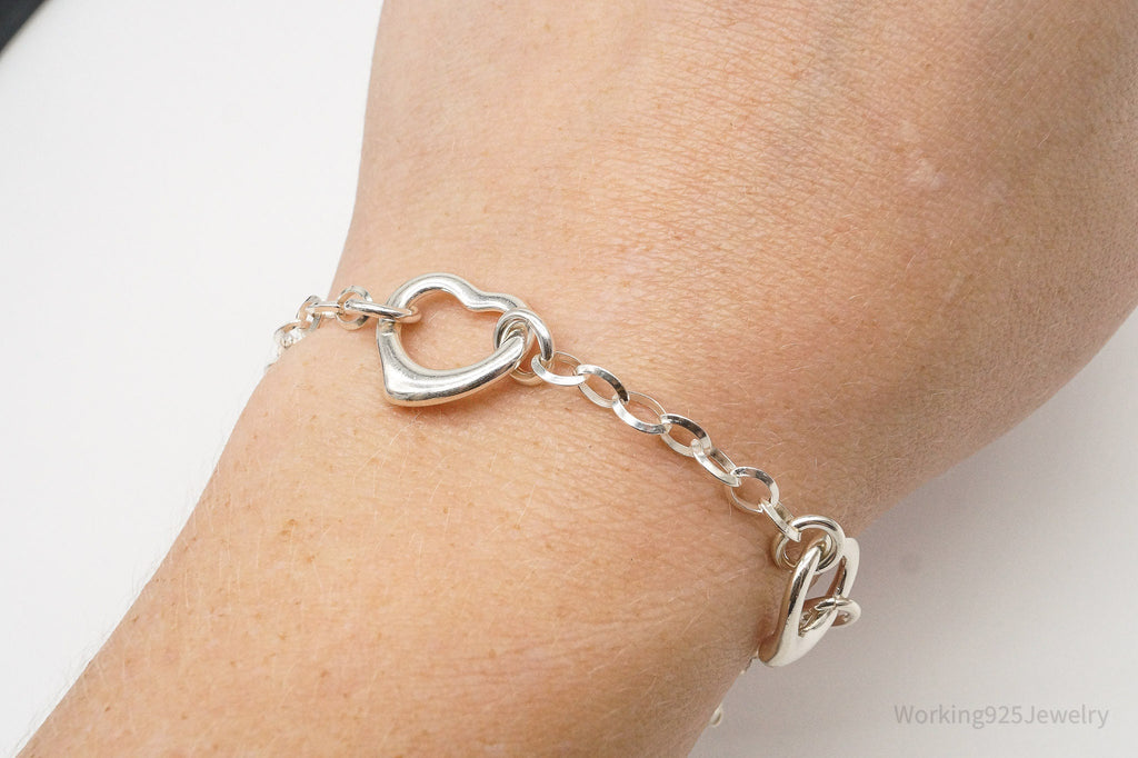 Vintage Italian Hearts Chain Link Sterling Silver Bracelet