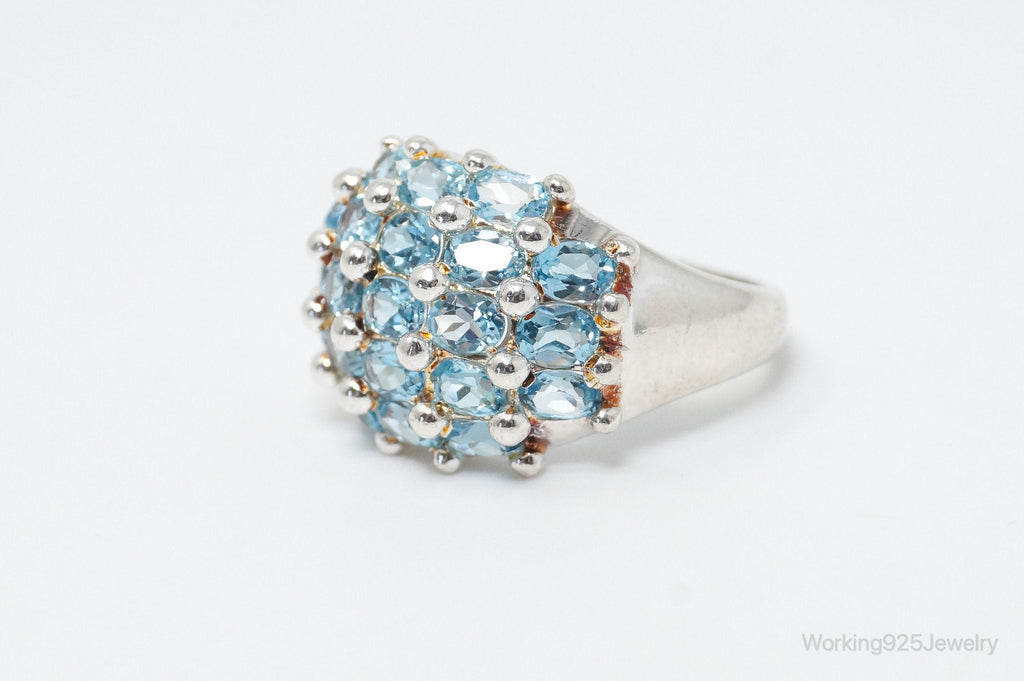 Vintage Italy Designer HAN Blue Topaz Sterling Silver Ring - Size 8.75