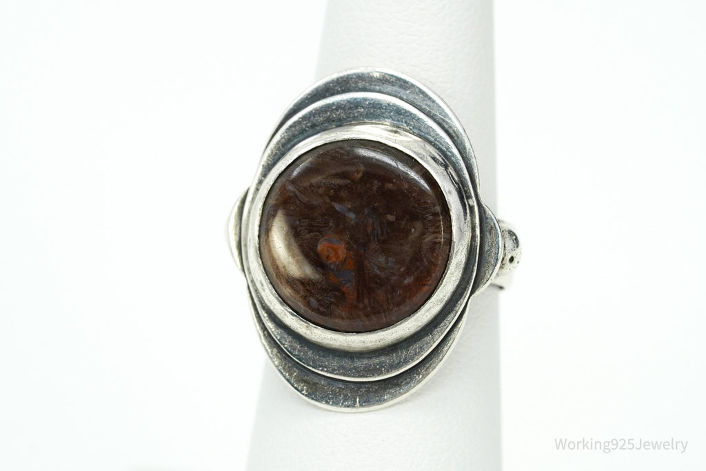 Vintage Jasper Modernist Style Silver Ring - Size 7
