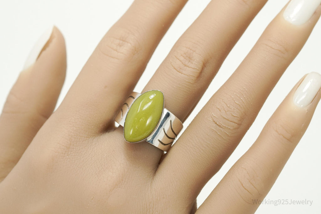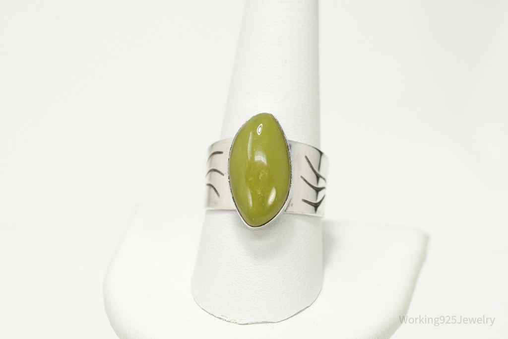 Vintage JAY KING Desert Rose Trading Co Green Jasper Sterling Silver Ring - Size 10