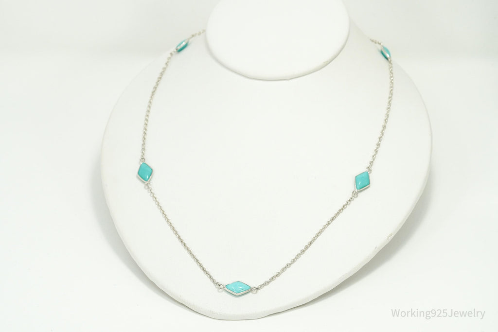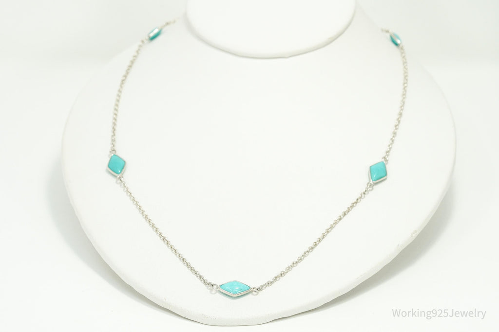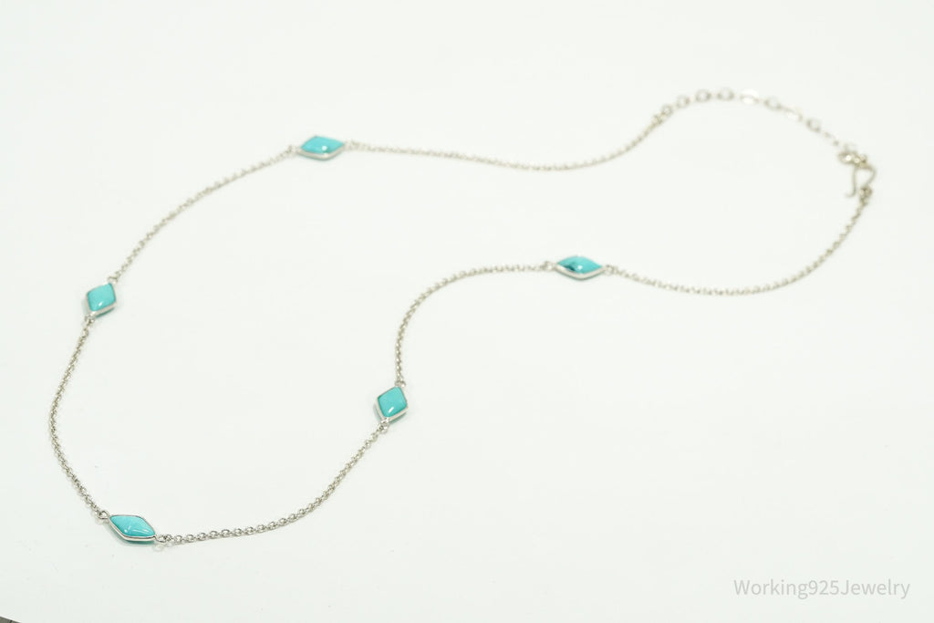 Vintage Jay King Desert Rose Trading Turquoise Sterling Silver Necklace 26"