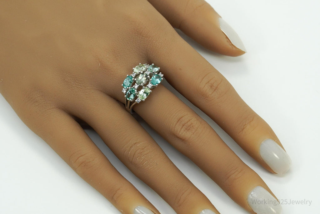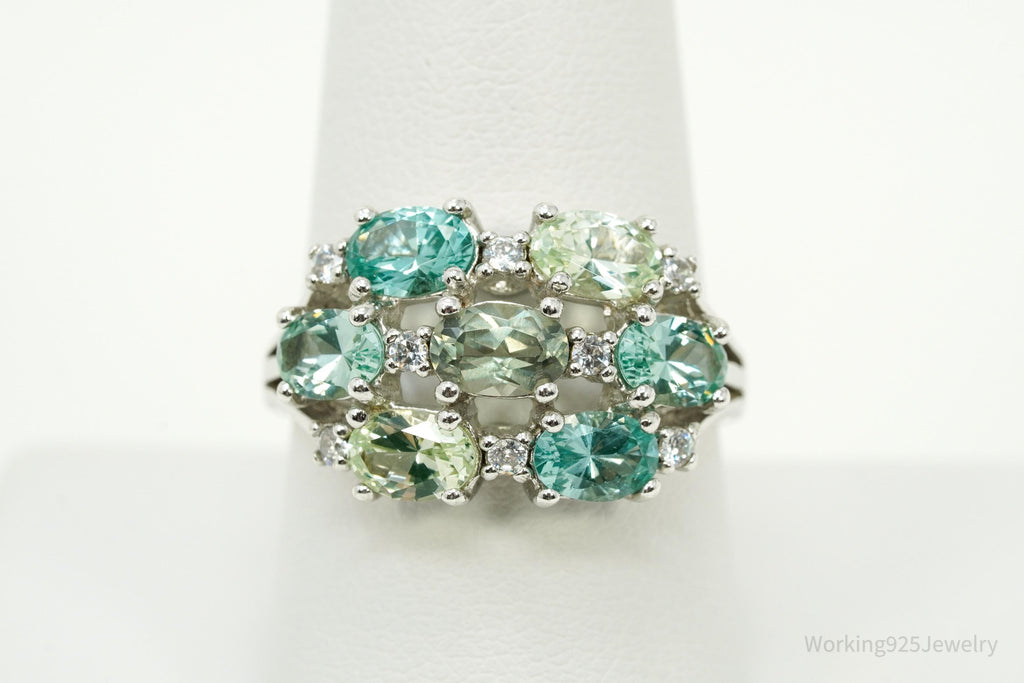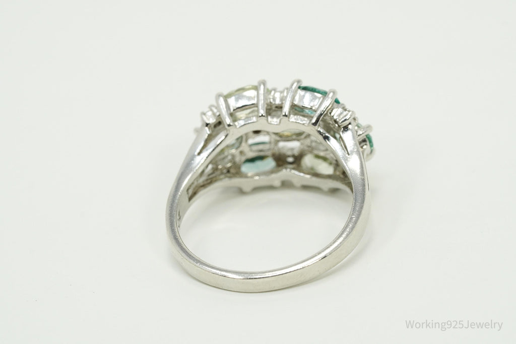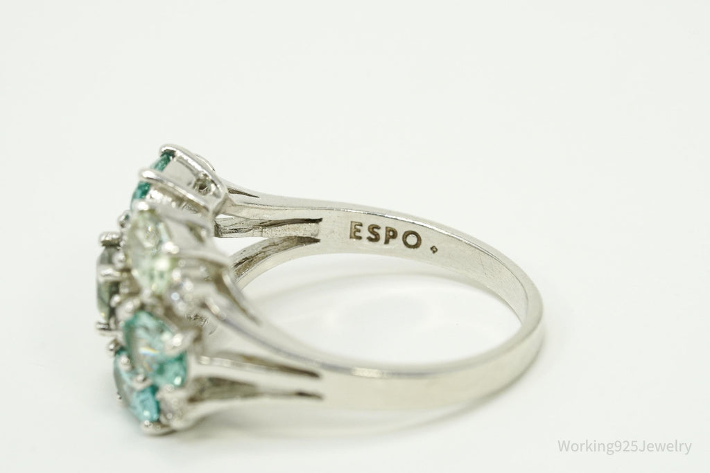 Vintage JOSEPH ESPOSITO ESPO Multi Gemstone Sterling Silver Ring - Size 9 - Green Amethyst - Green Spinel - Cubic Zirconia