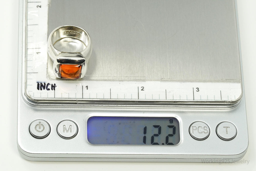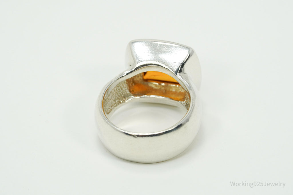 Vintage Joseph Esposito Sig Amber Sterling Silver Ring - Size 6