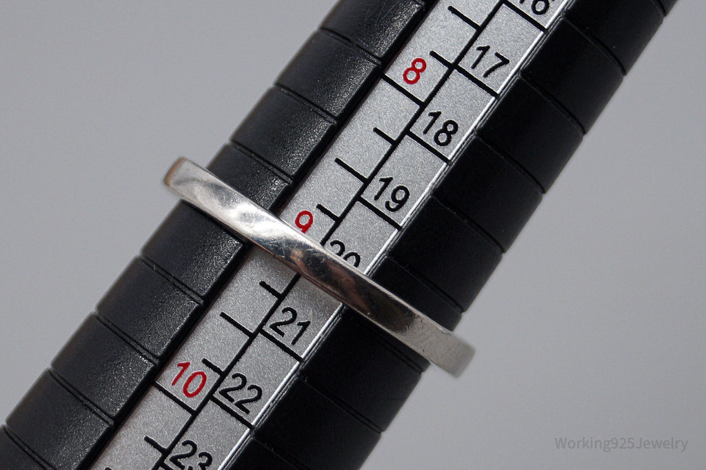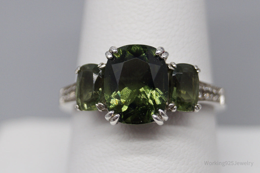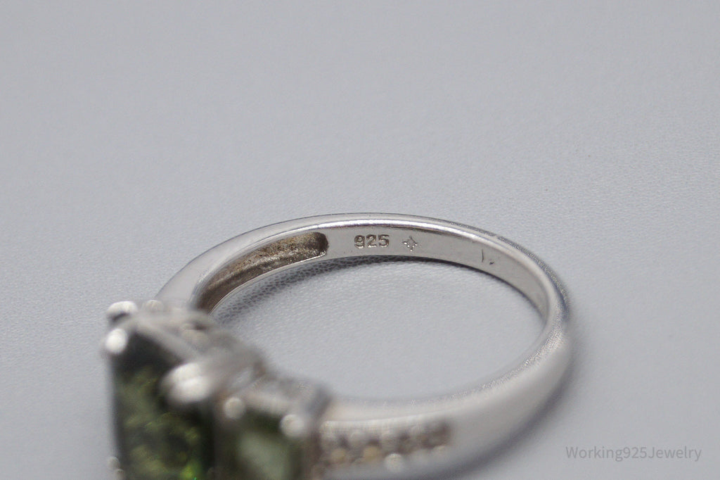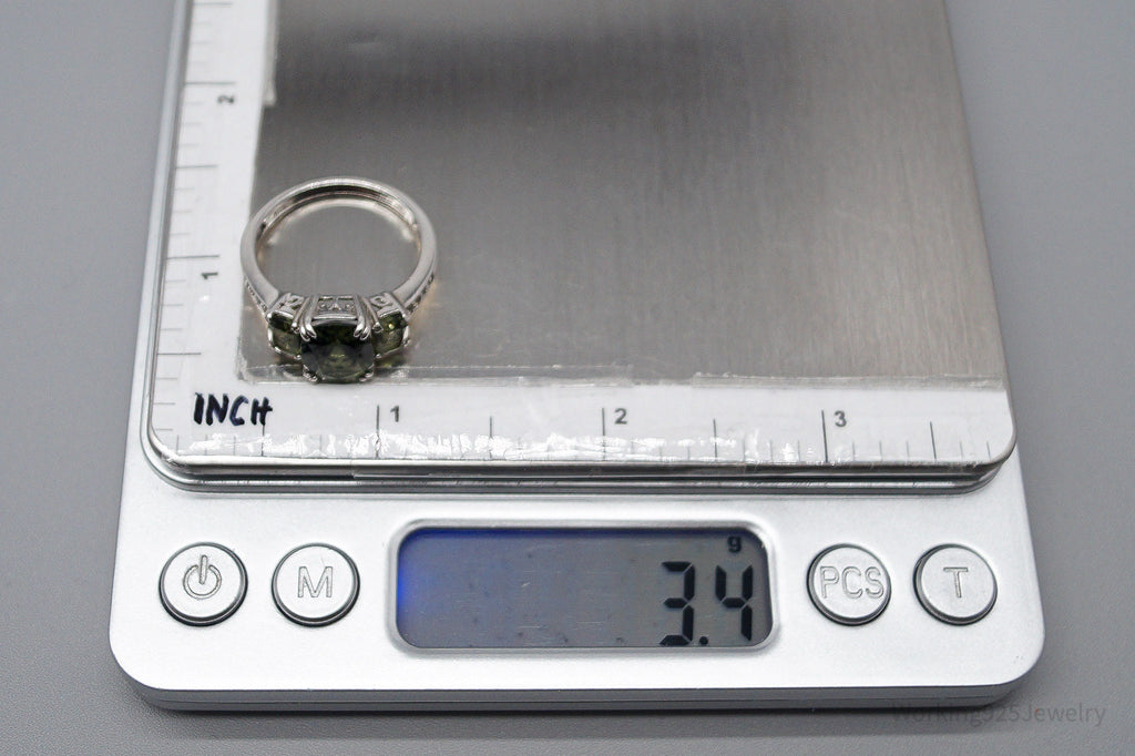 Vintage JTV's Green Moldavite & White Zircon Sterling Silver Ring - Size 9