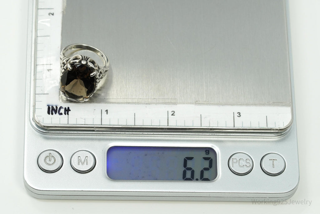 Vintage Kabana Large Smoky Topaz Sterling Silver Ring - Size 5.75