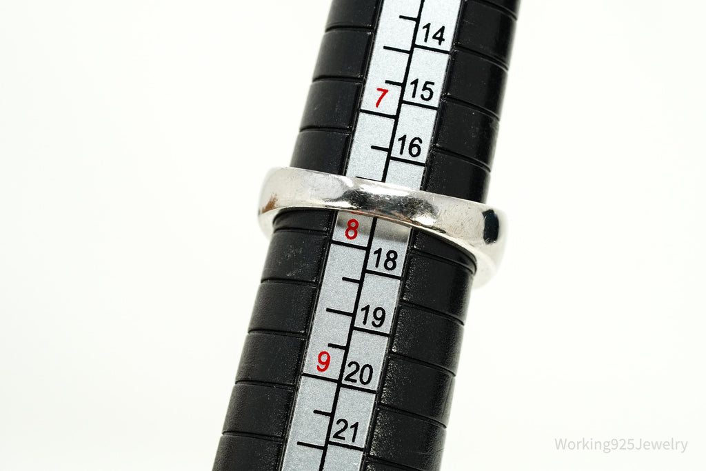Ring Listings: It is sometimes difficult to determine how a ring will fit without being able to try it on. I always recommend taking your favorite ring to a local jeweler and comparing the way that it sits on a mandrel (ring sizer) with the pictures in the listings prior to purchase. Sometimes wide band rings fit a little differently and I always want my customers to be 100% happy with their purchases! Please let me know if I can help by offering more pictures for size comparison.
