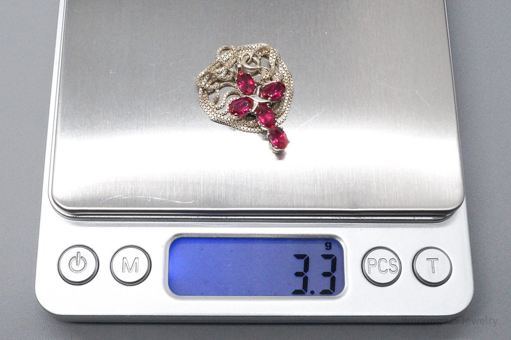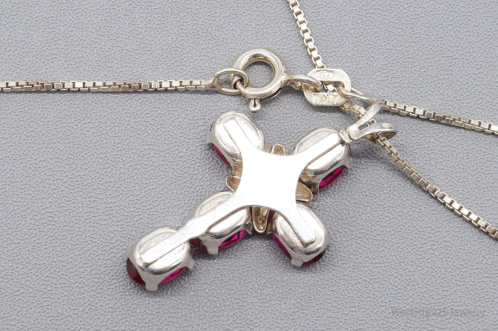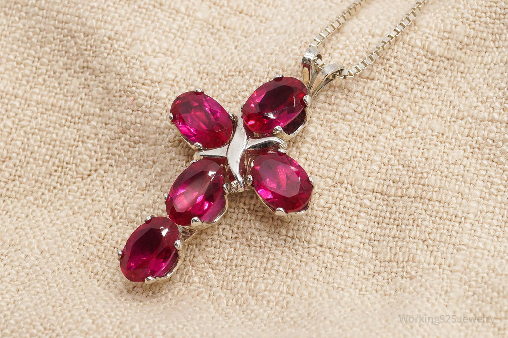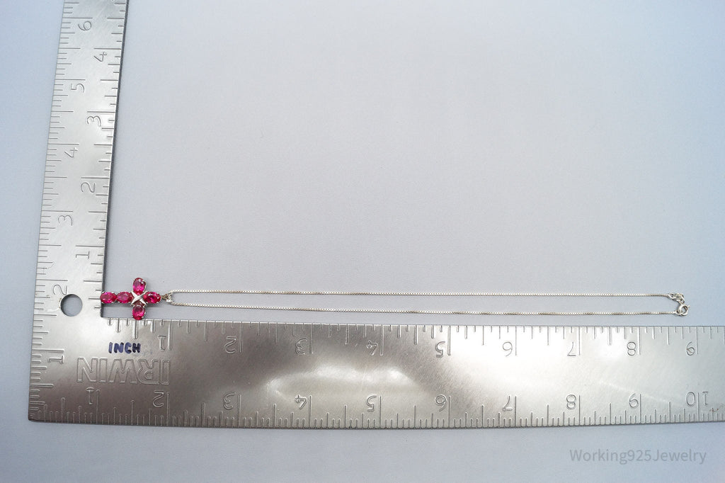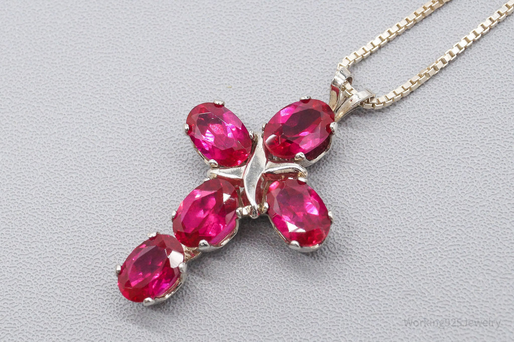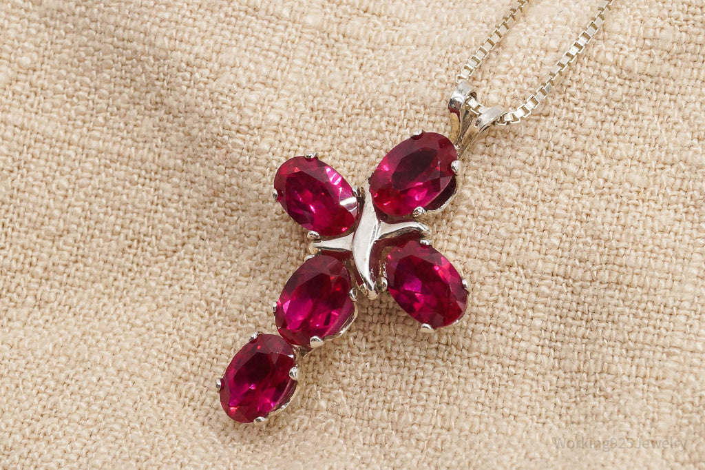 Vintage Lab Ruby Cross Sterling Silver Necklace 16"