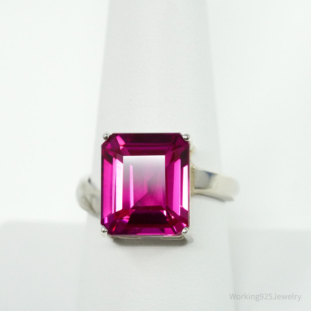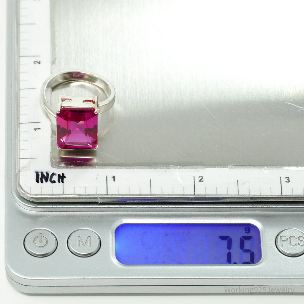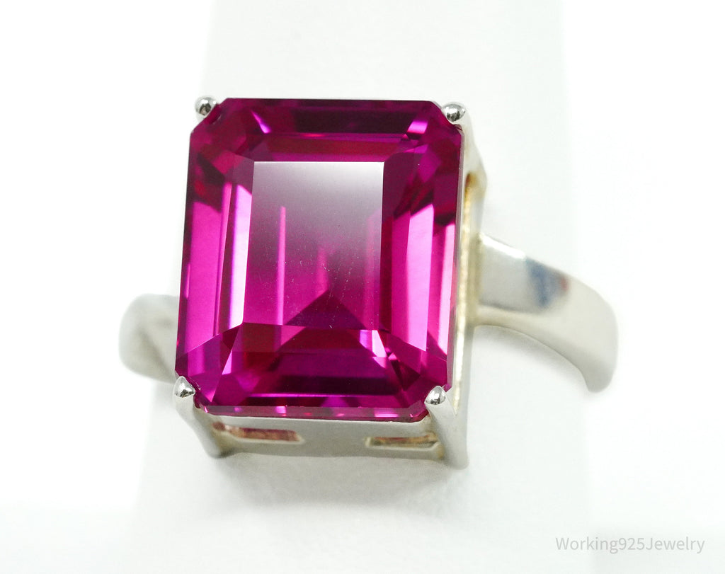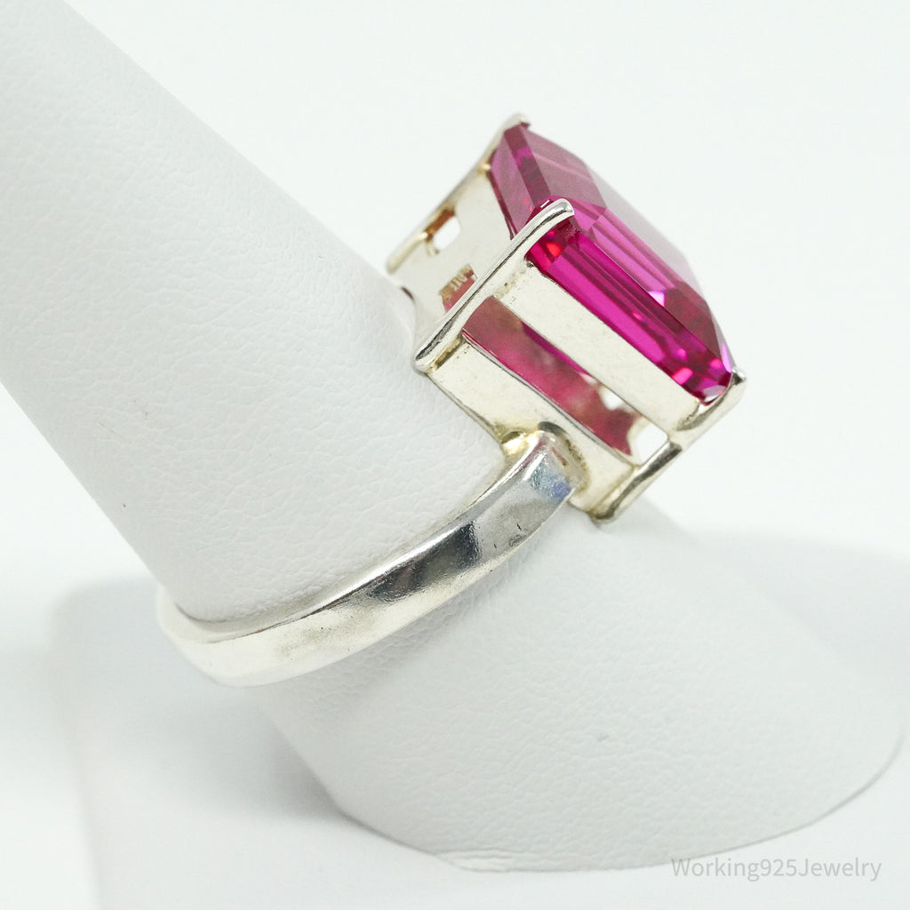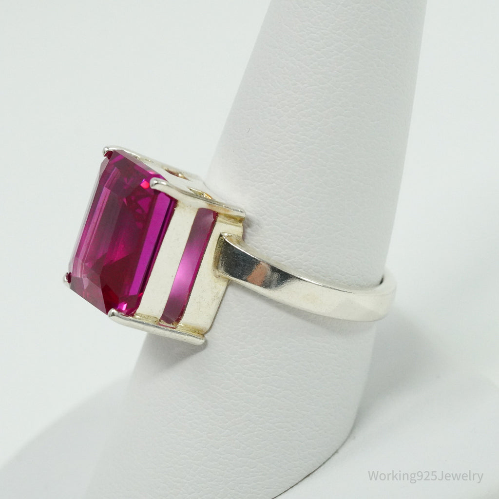 Vintage Lab Ruby Sterling Silver Ring - Size 8.75