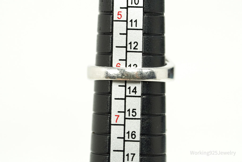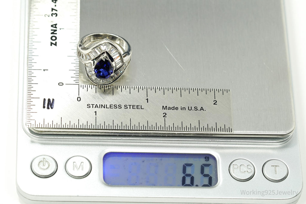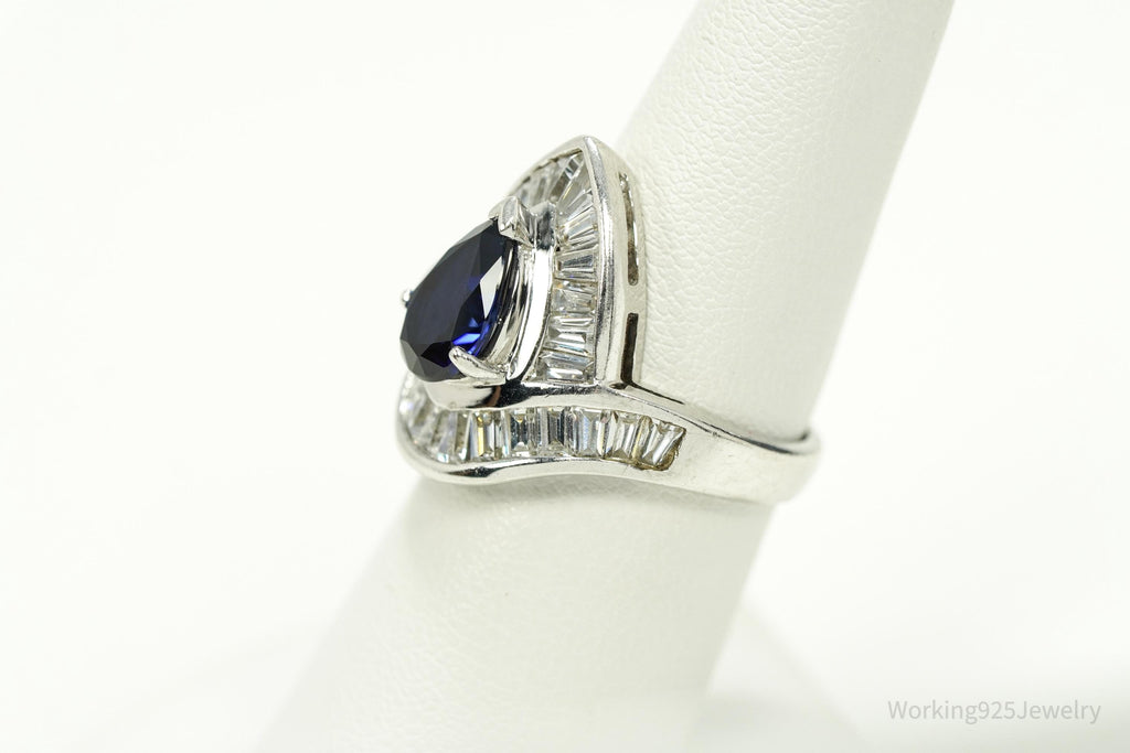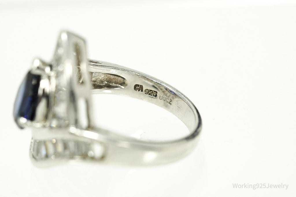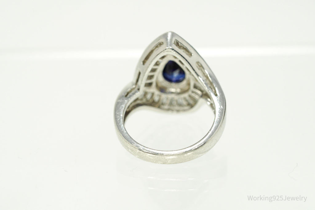 Vintage Lab Sapphire & Cubic Zirconia Rhodium Plated Sterling Silver Ring - Size 6